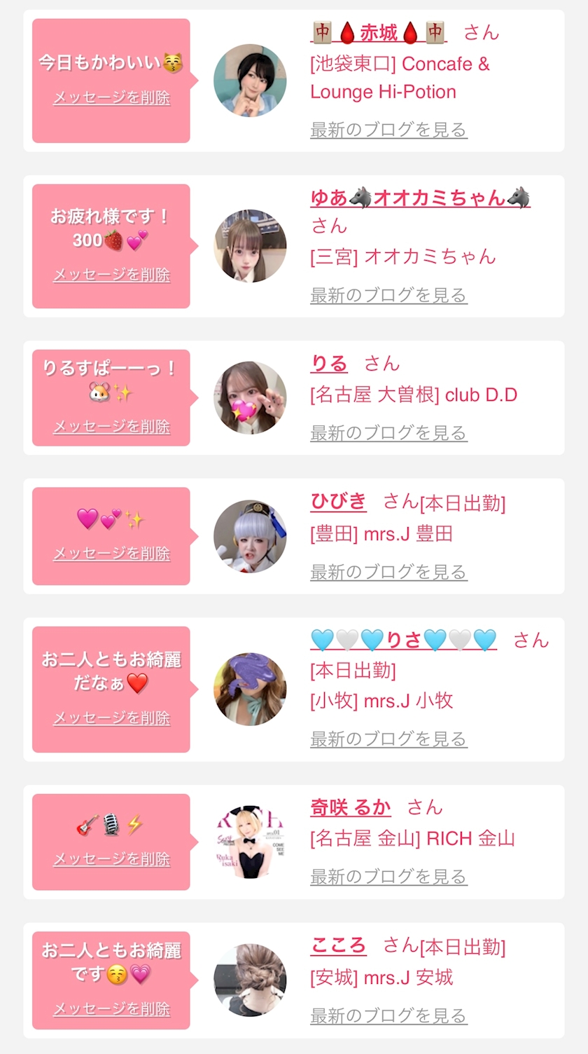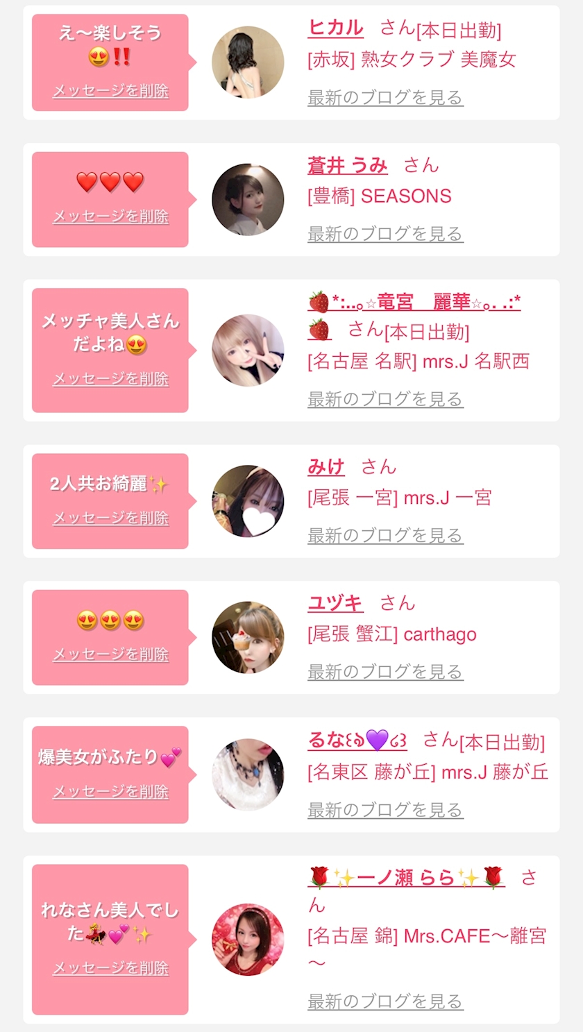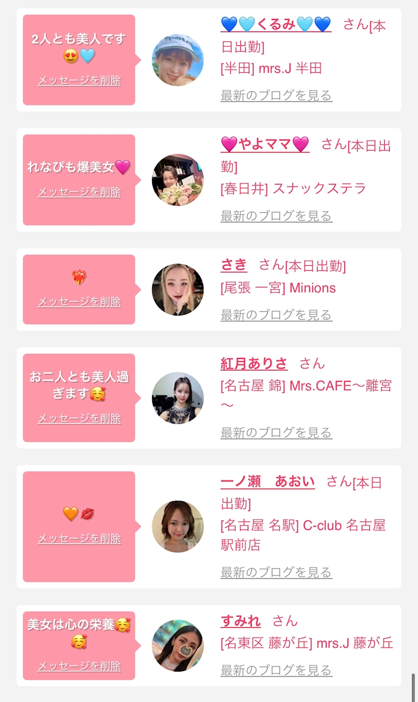 お店の出勤キャストを