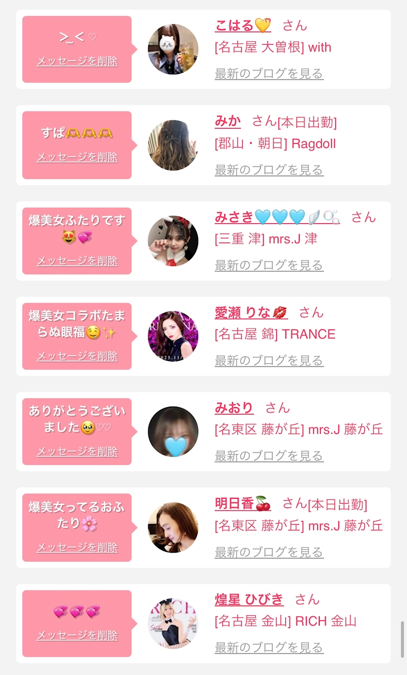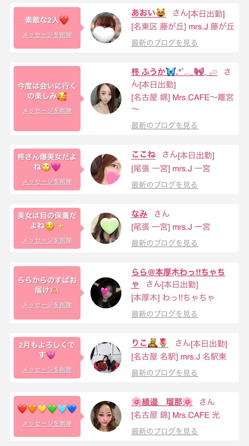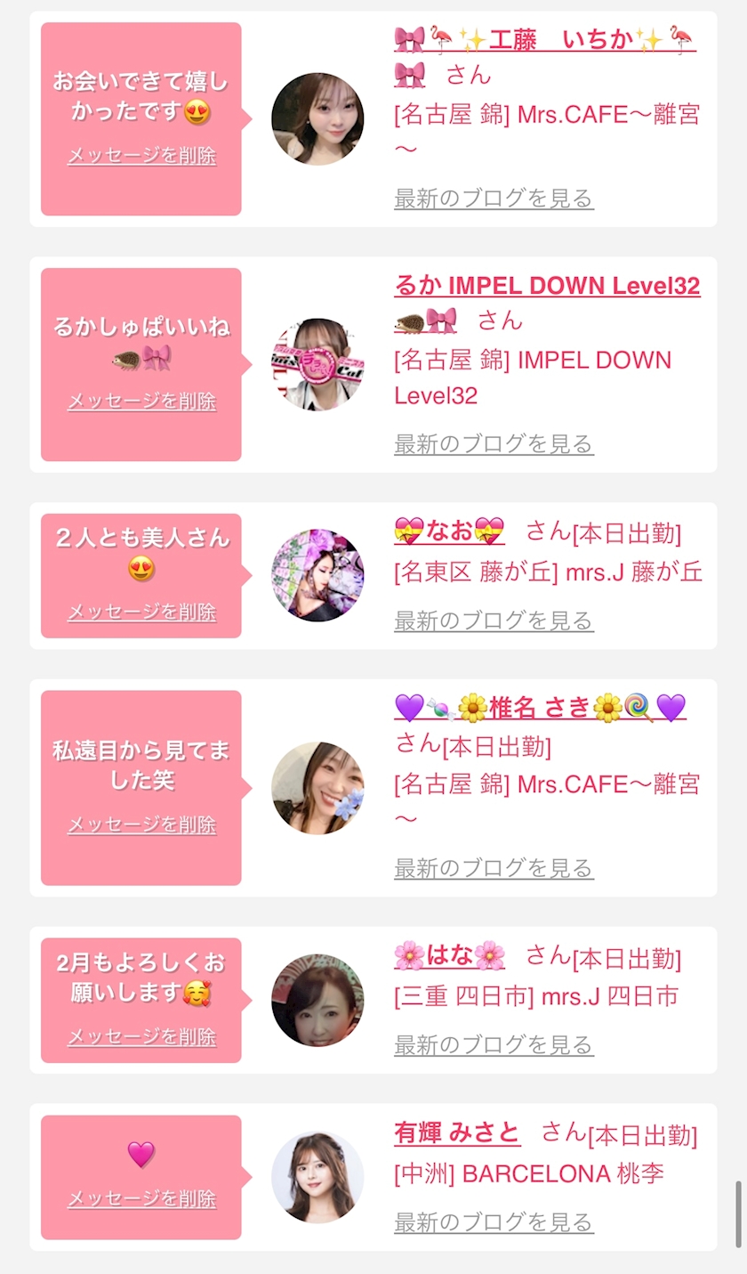 お店の出勤キャストを