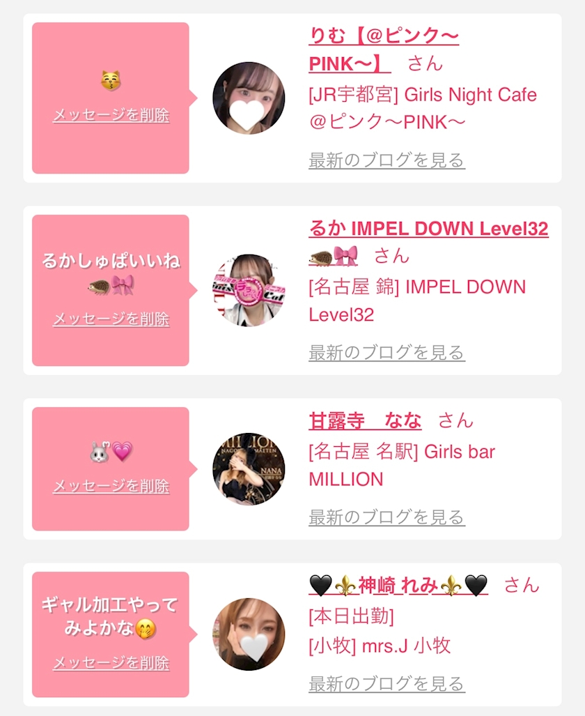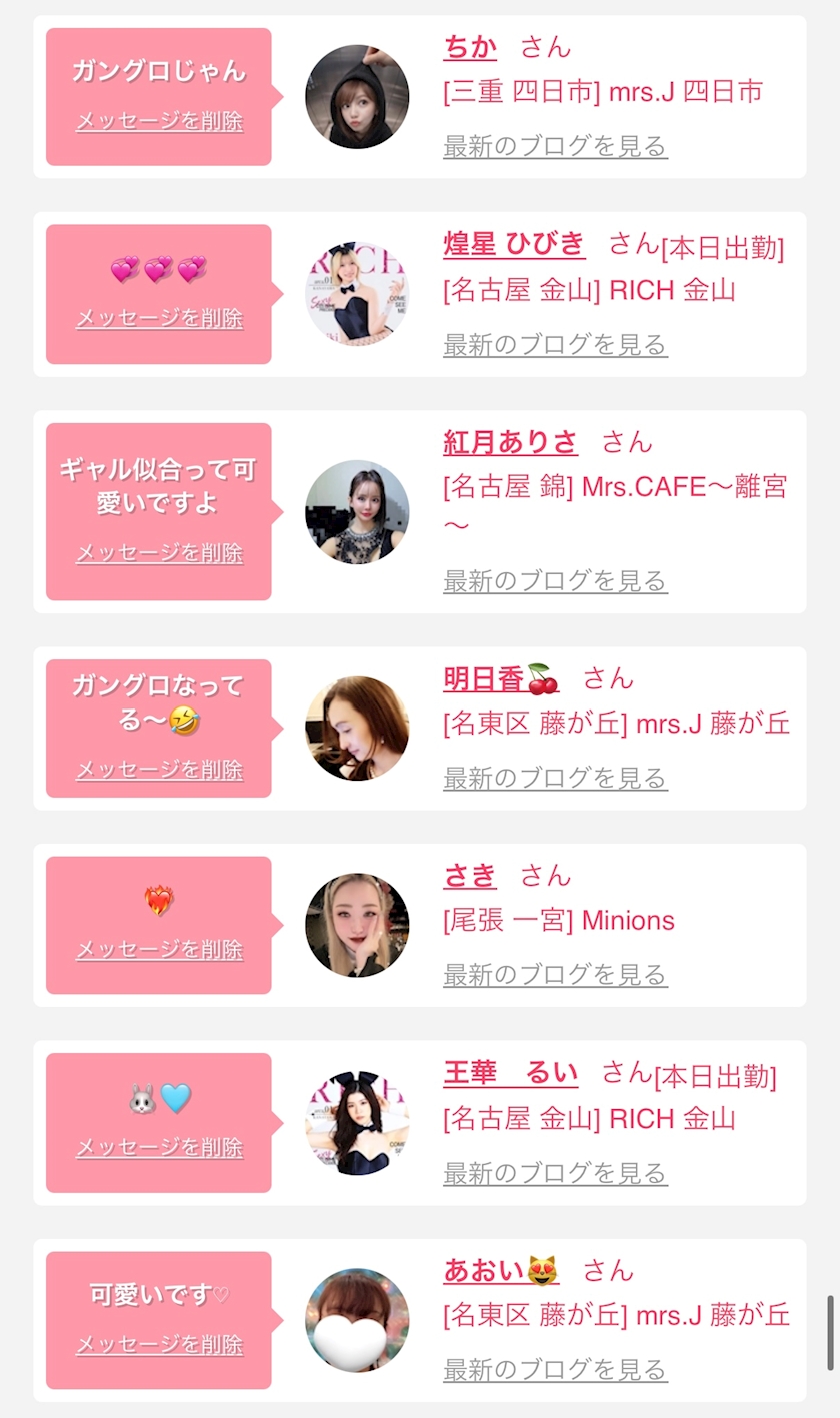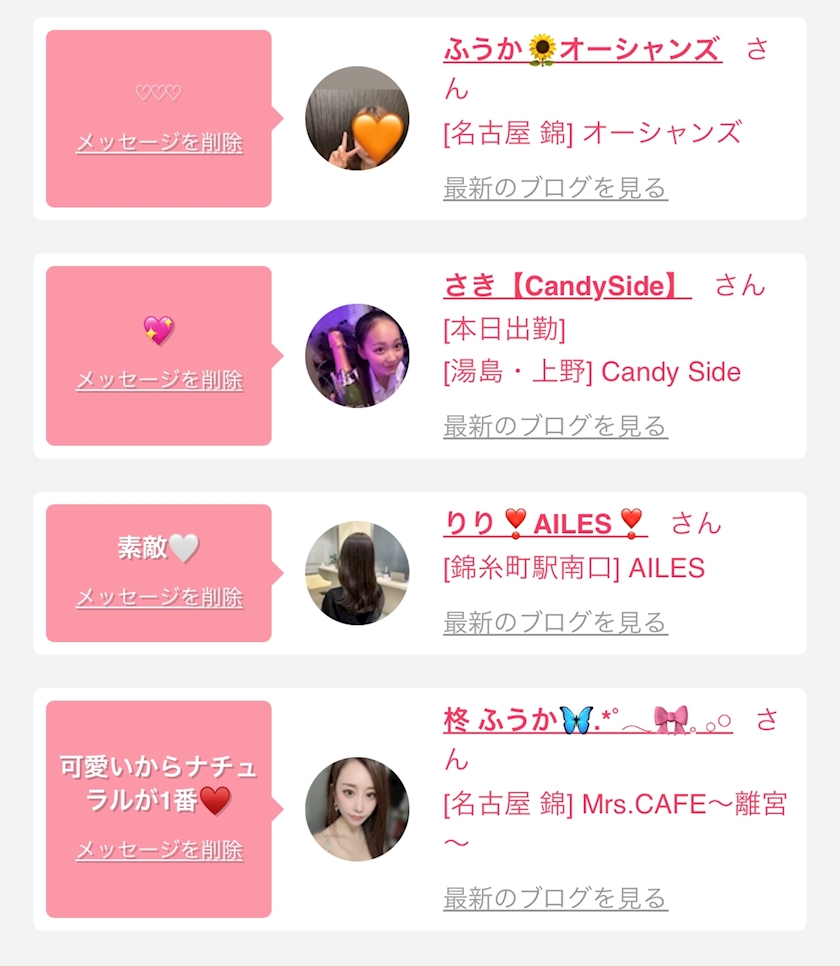 お店の出勤キャストを