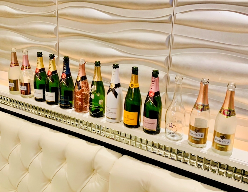 店長が空いたボトルを綺麗に並べて