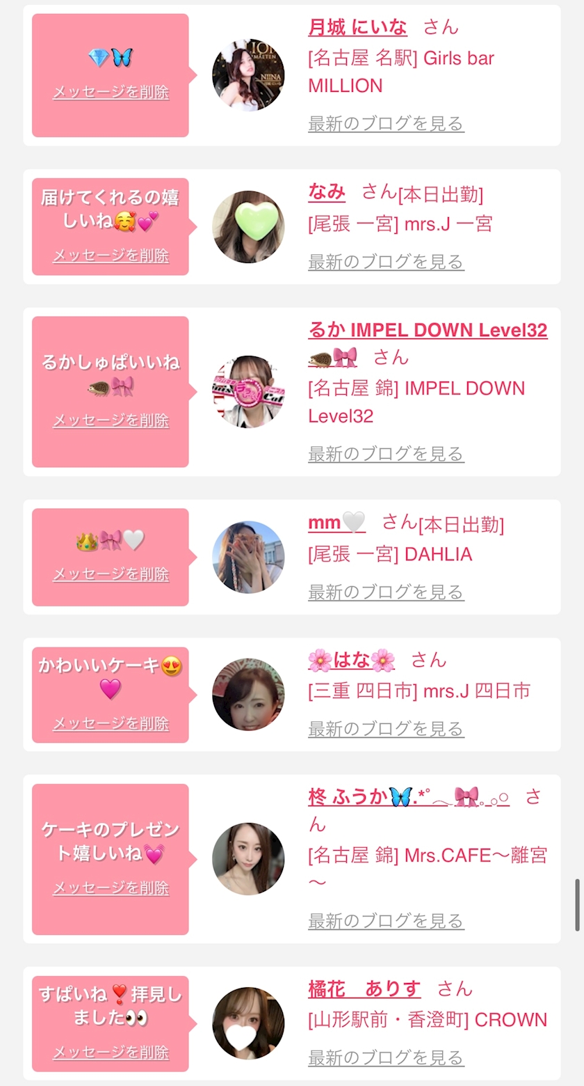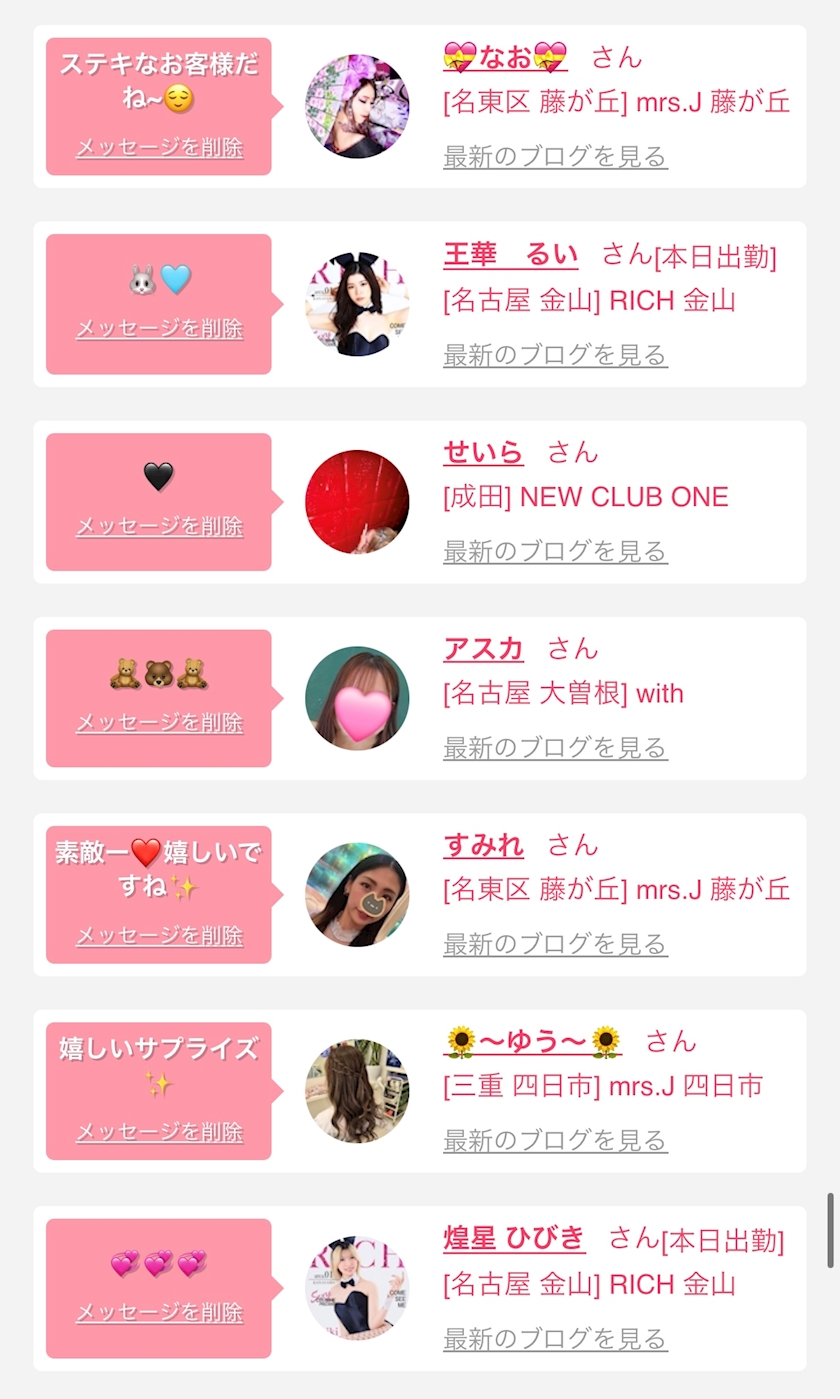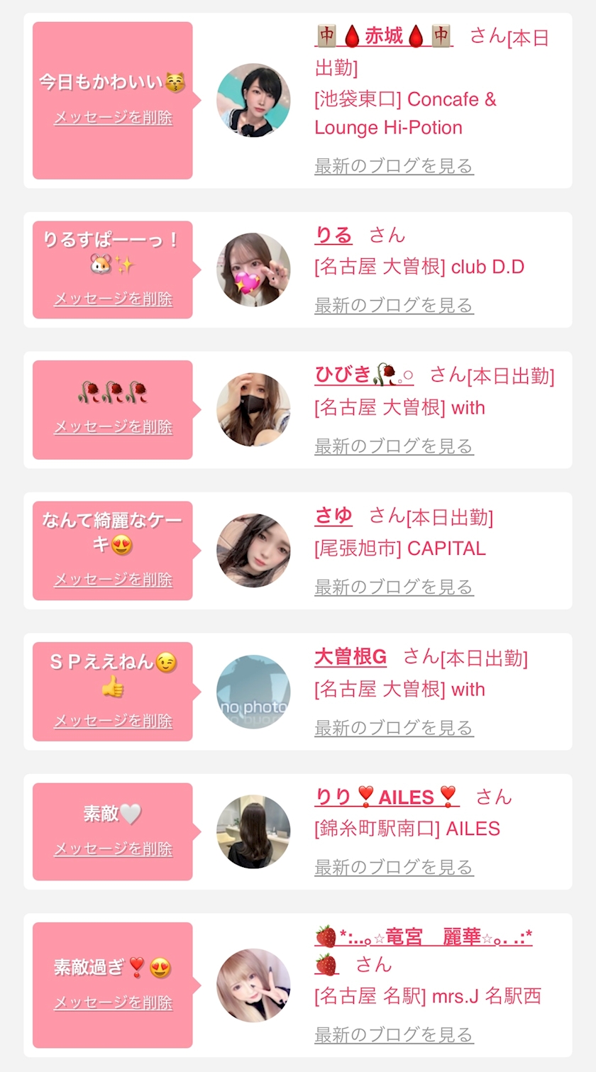 お店の出勤キャストを