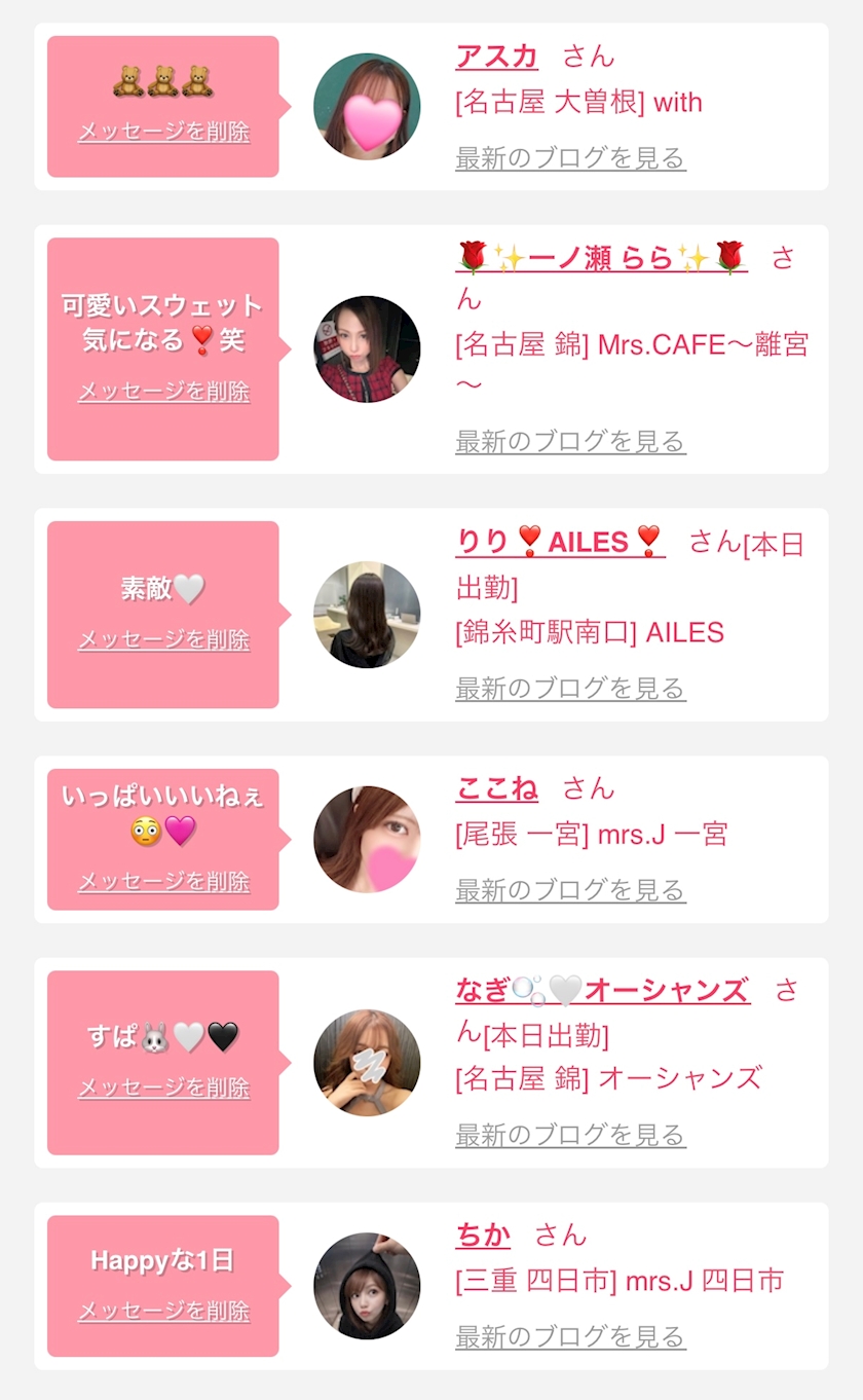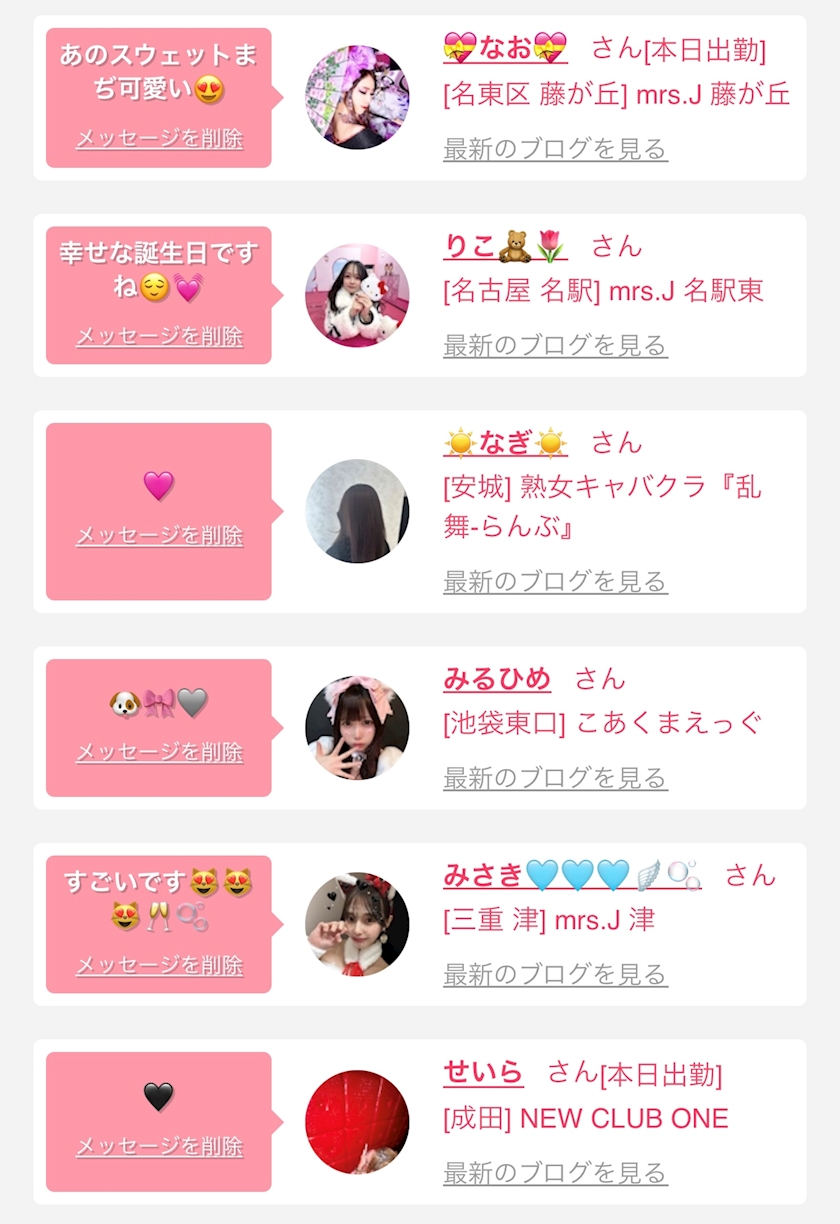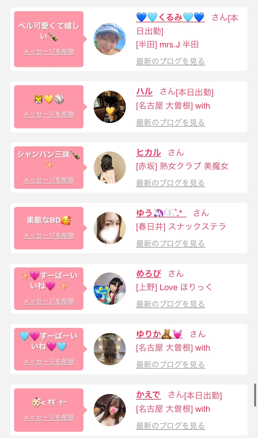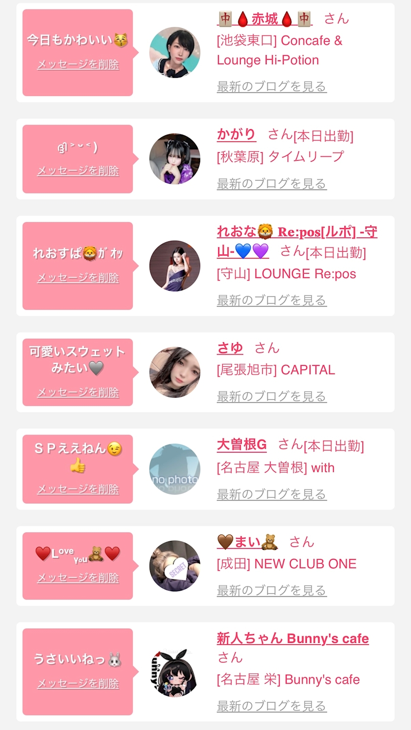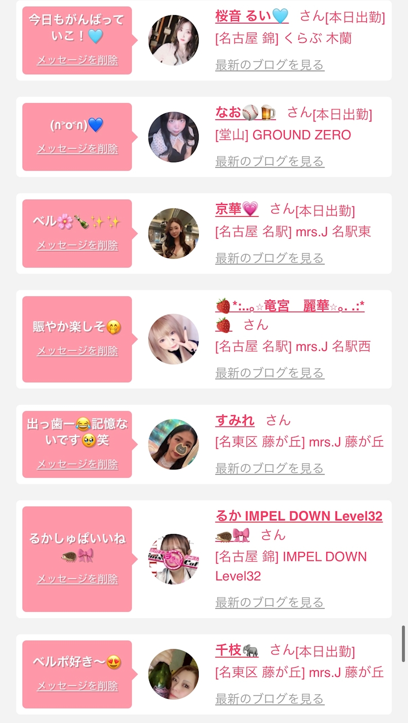 お店の出勤キャストを