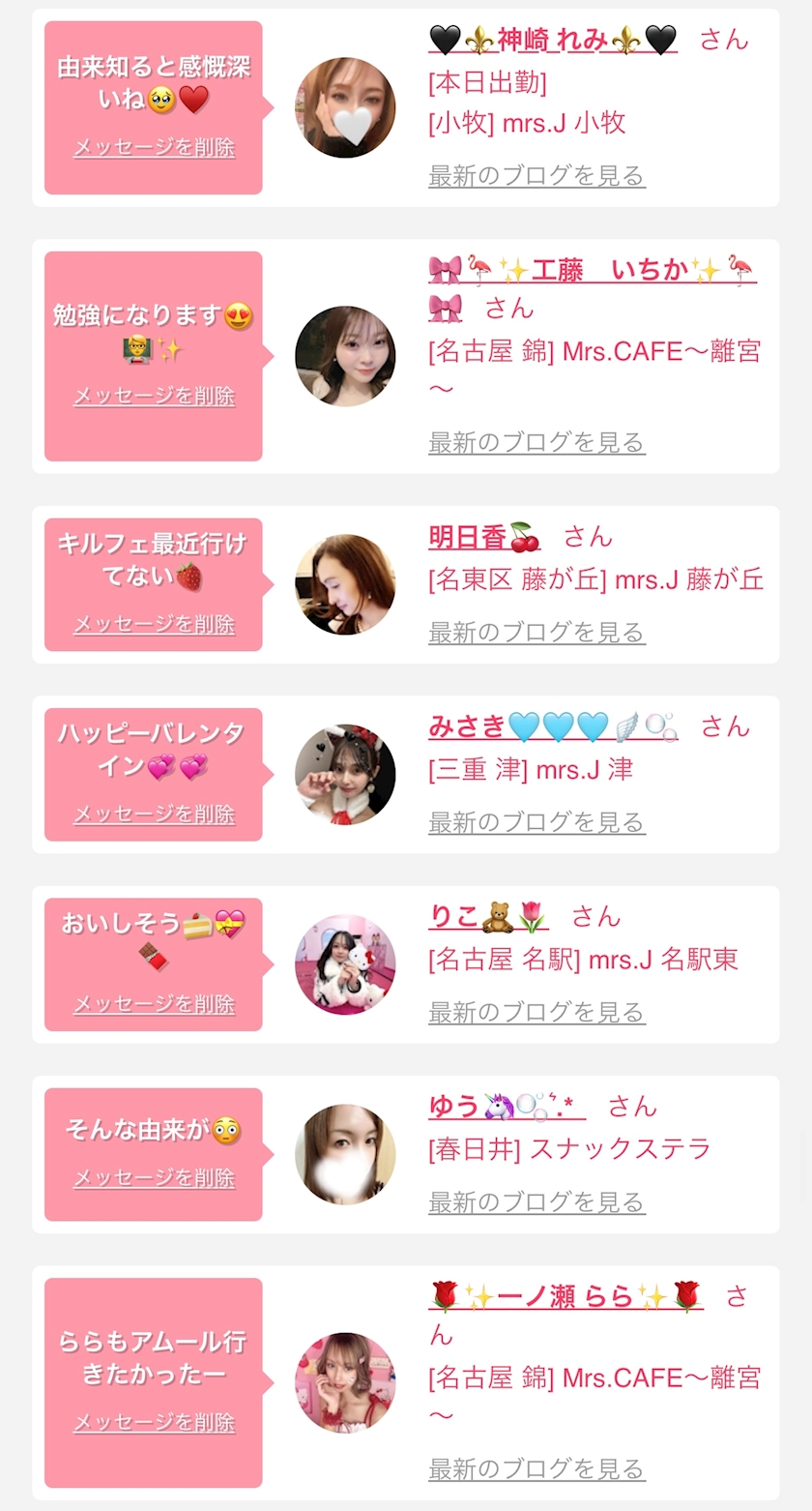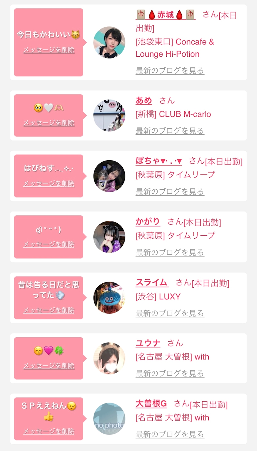 お店の出勤キャストを