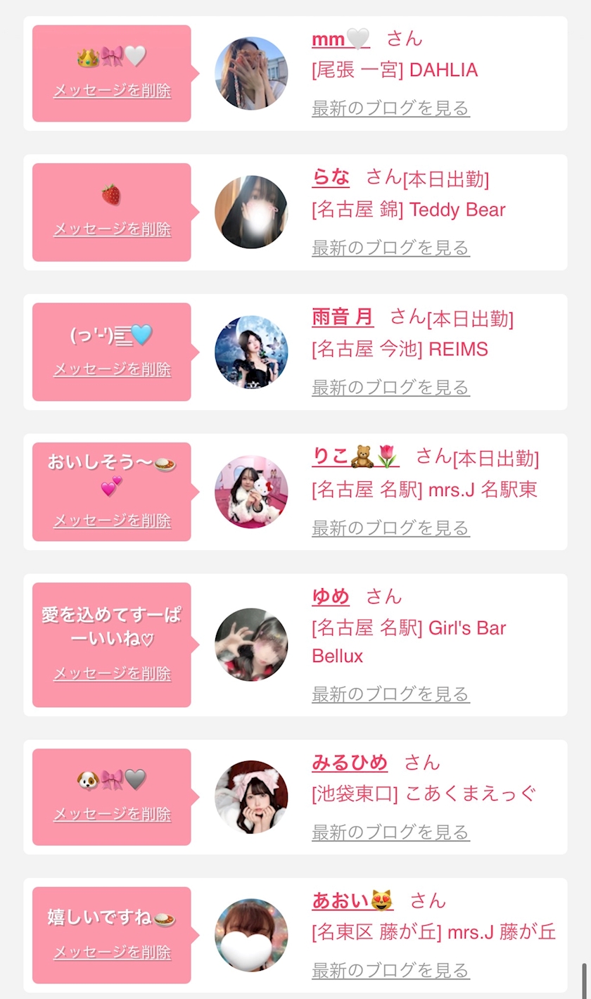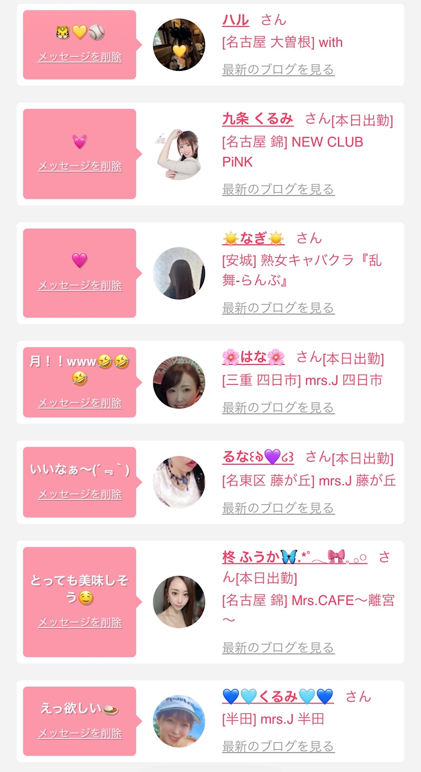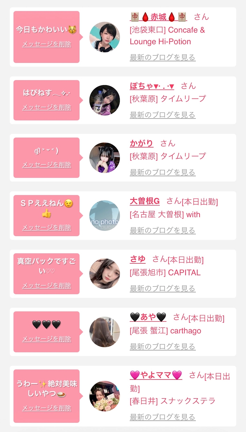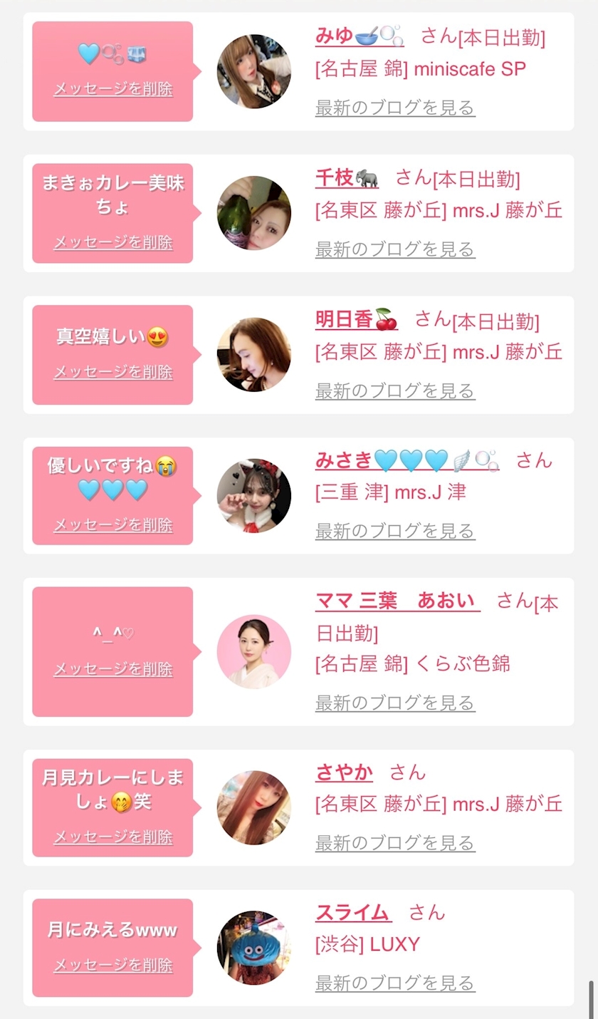 お店の出勤キャストを