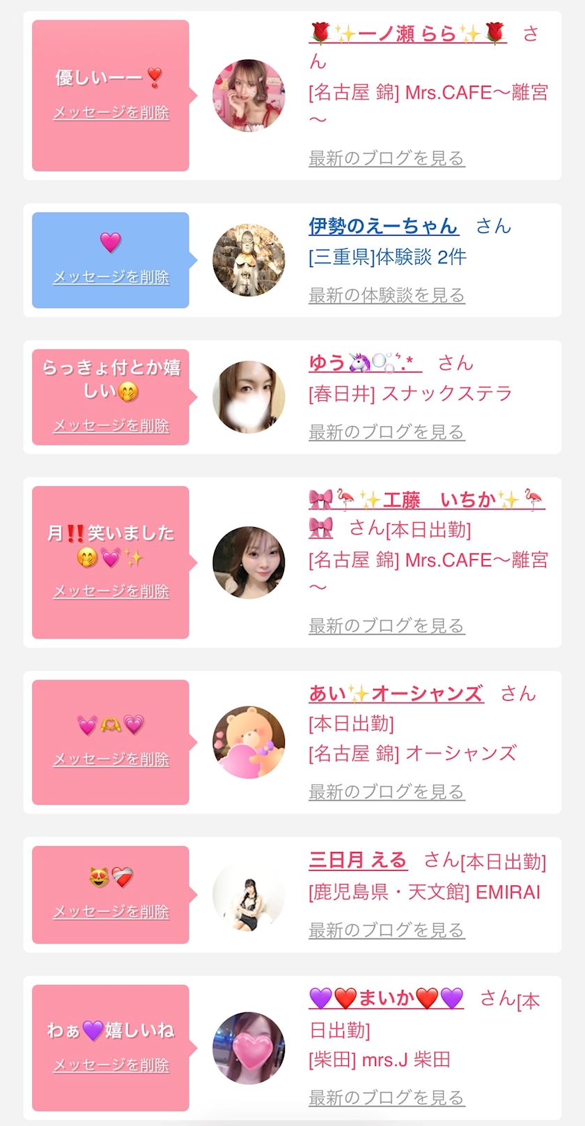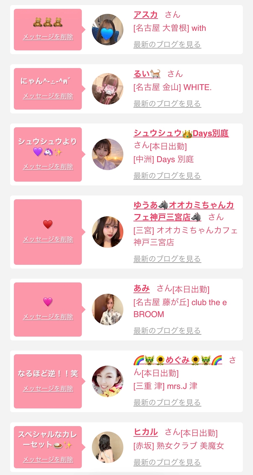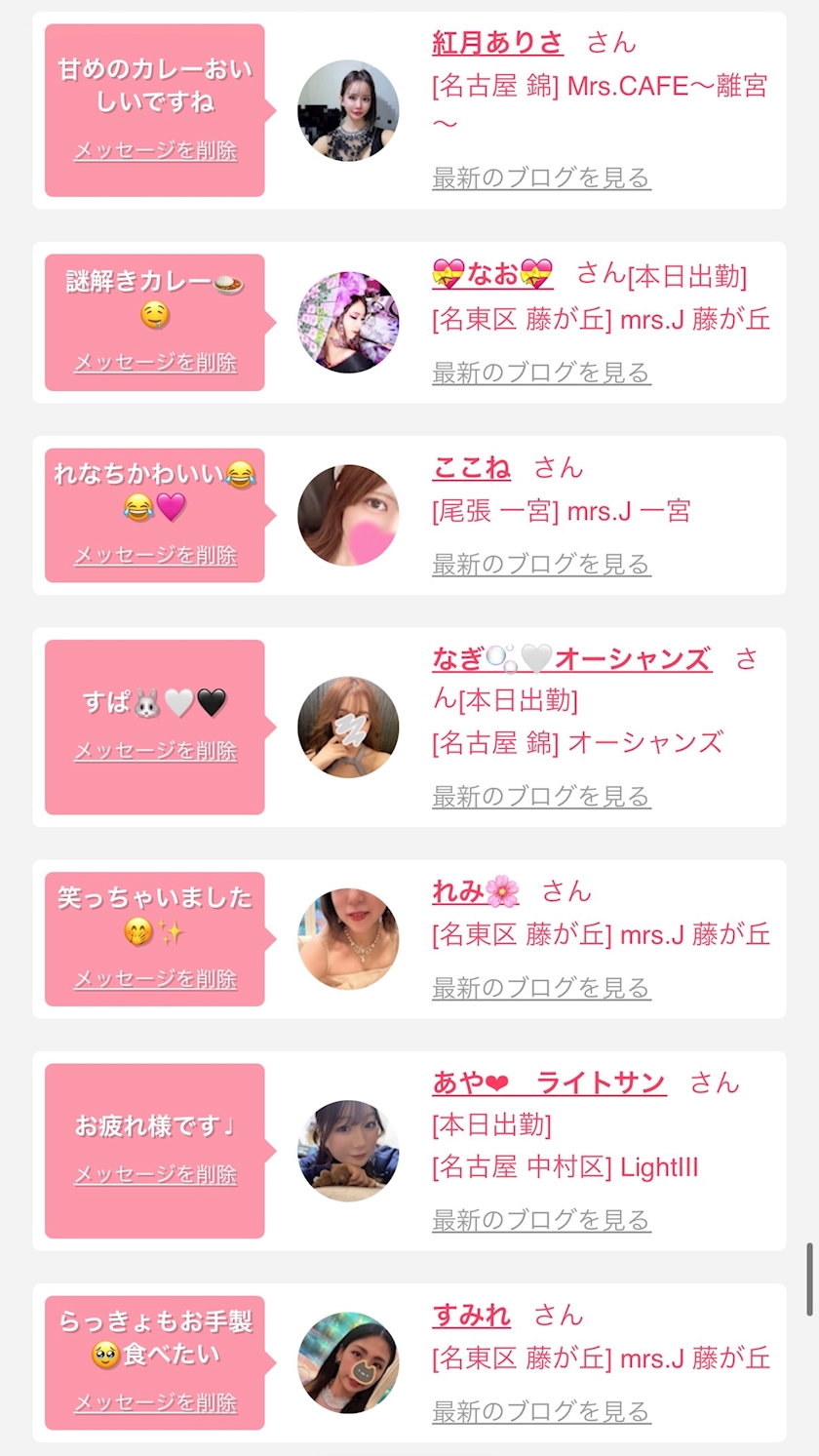 お店の出勤キャストを
