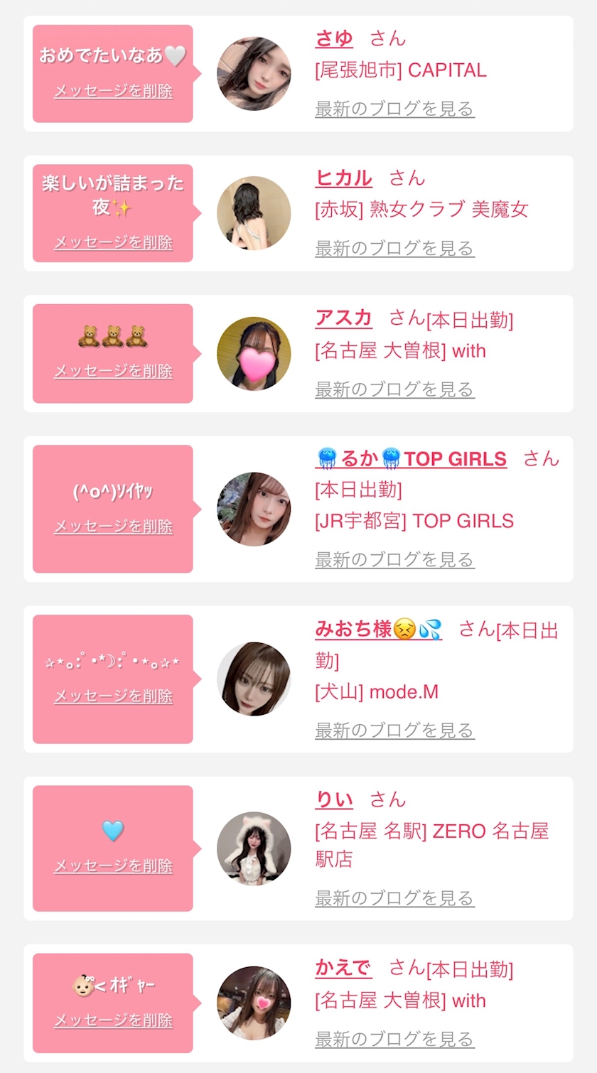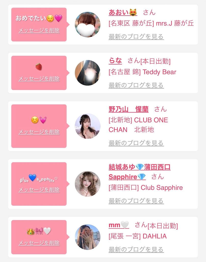 お店の出勤キャストを