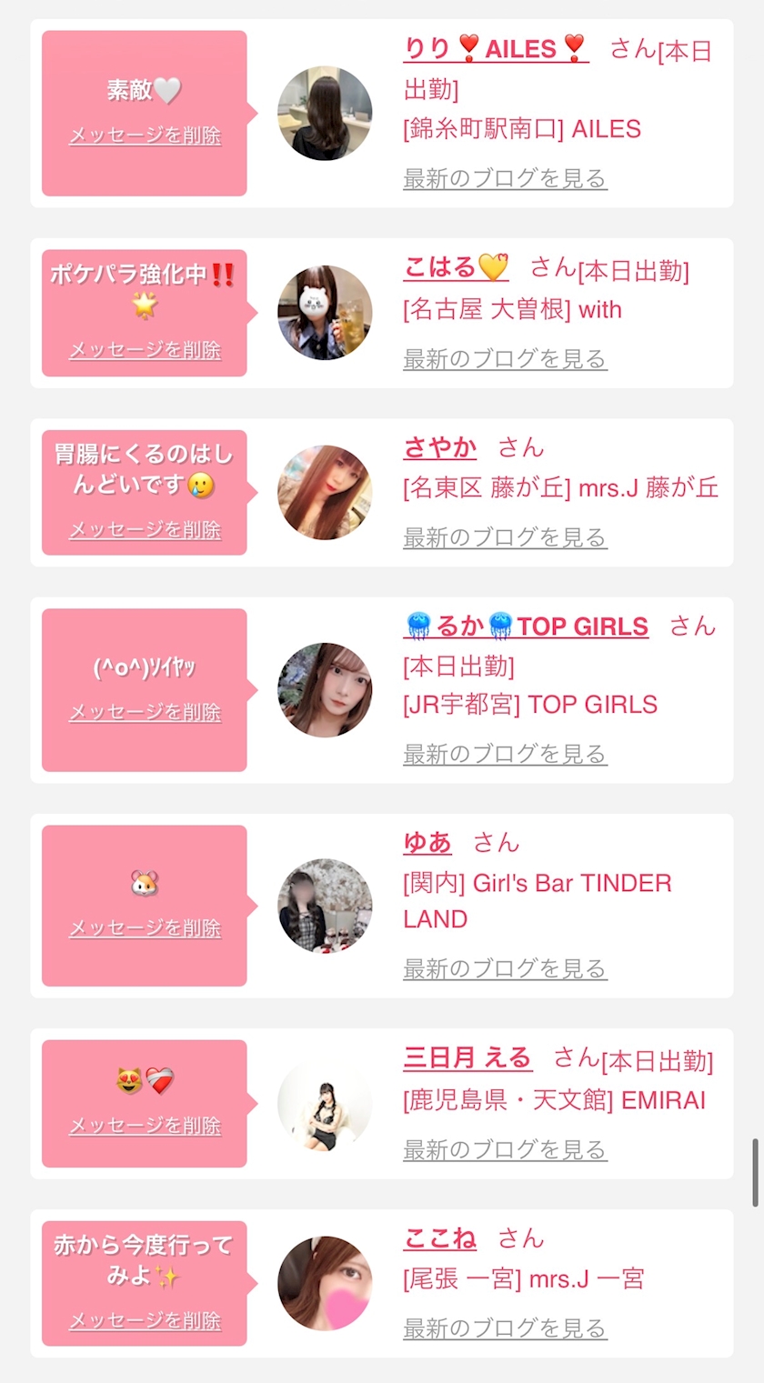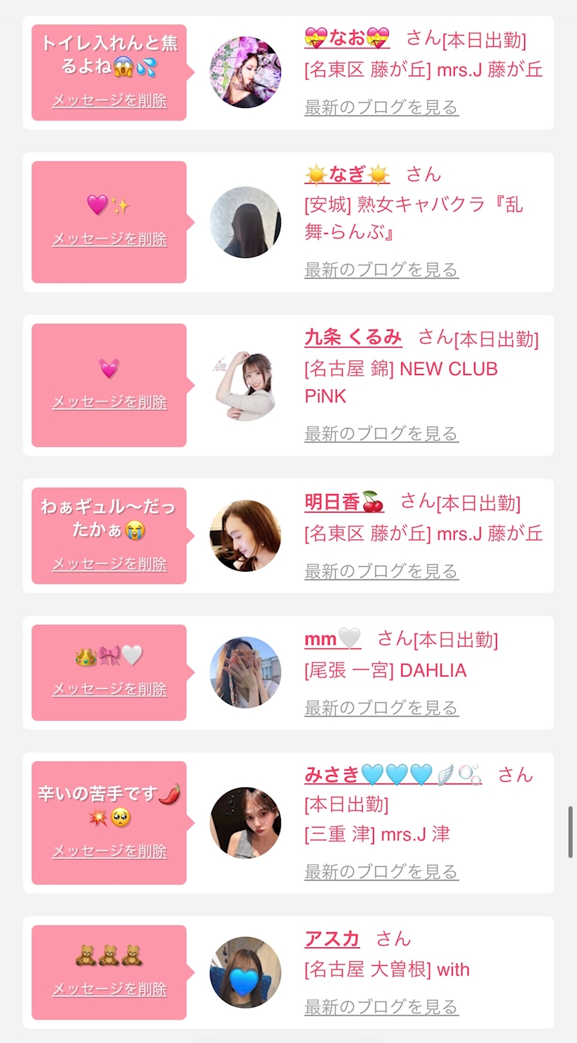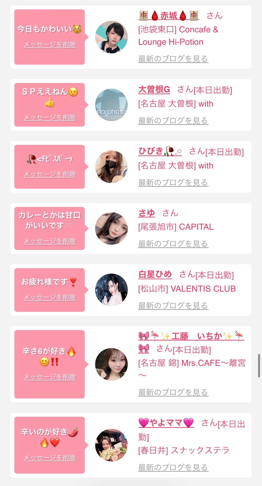 お店の出勤キャストを