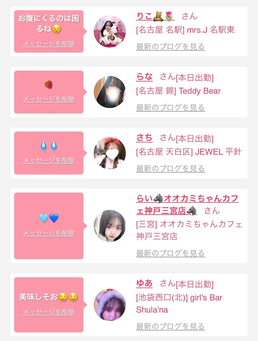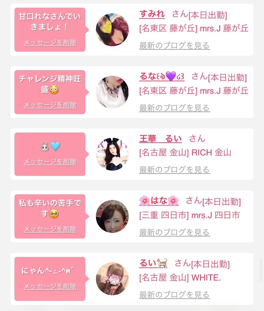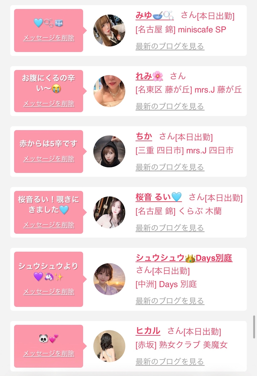 お店の出勤キャストを
