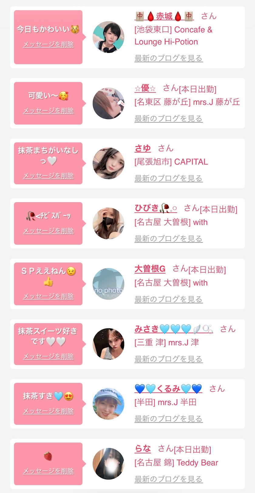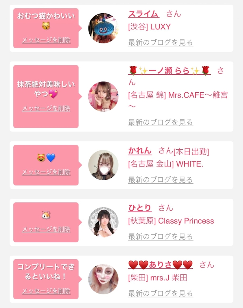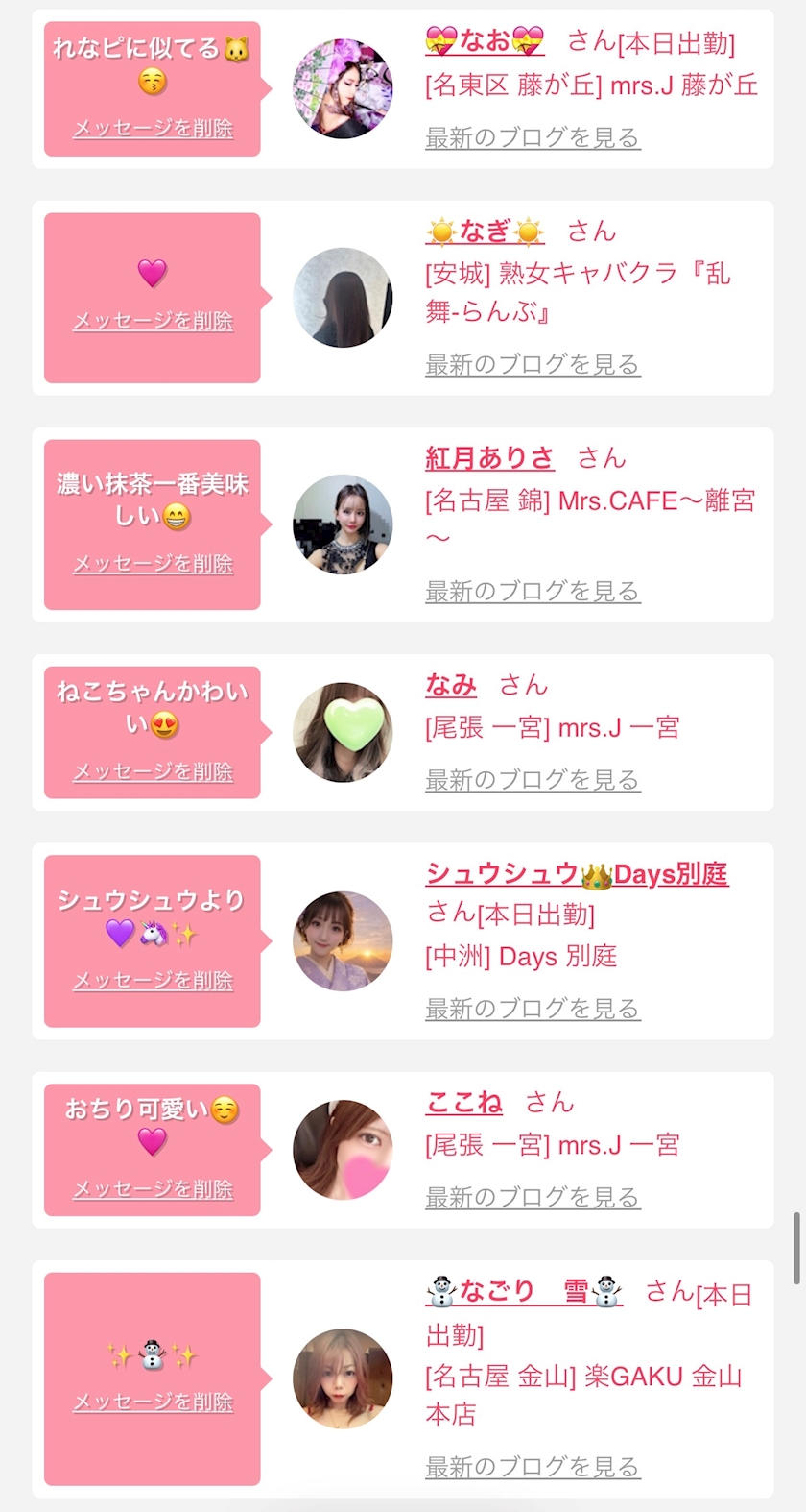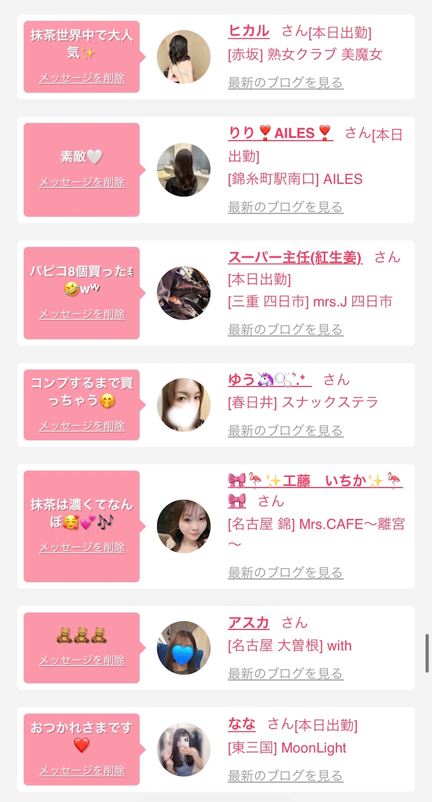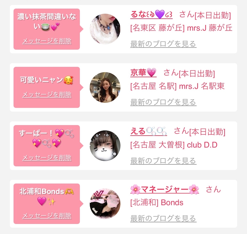 お店の出勤キャストを