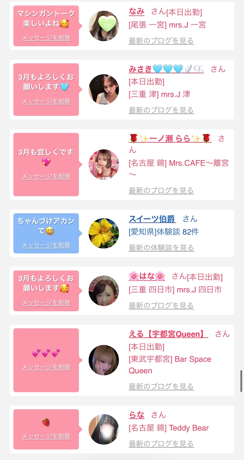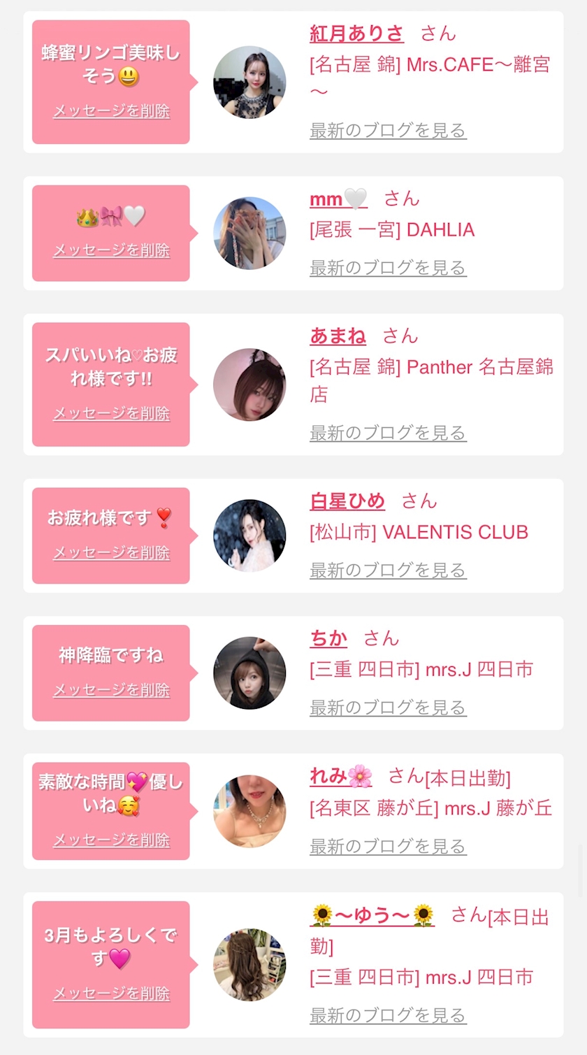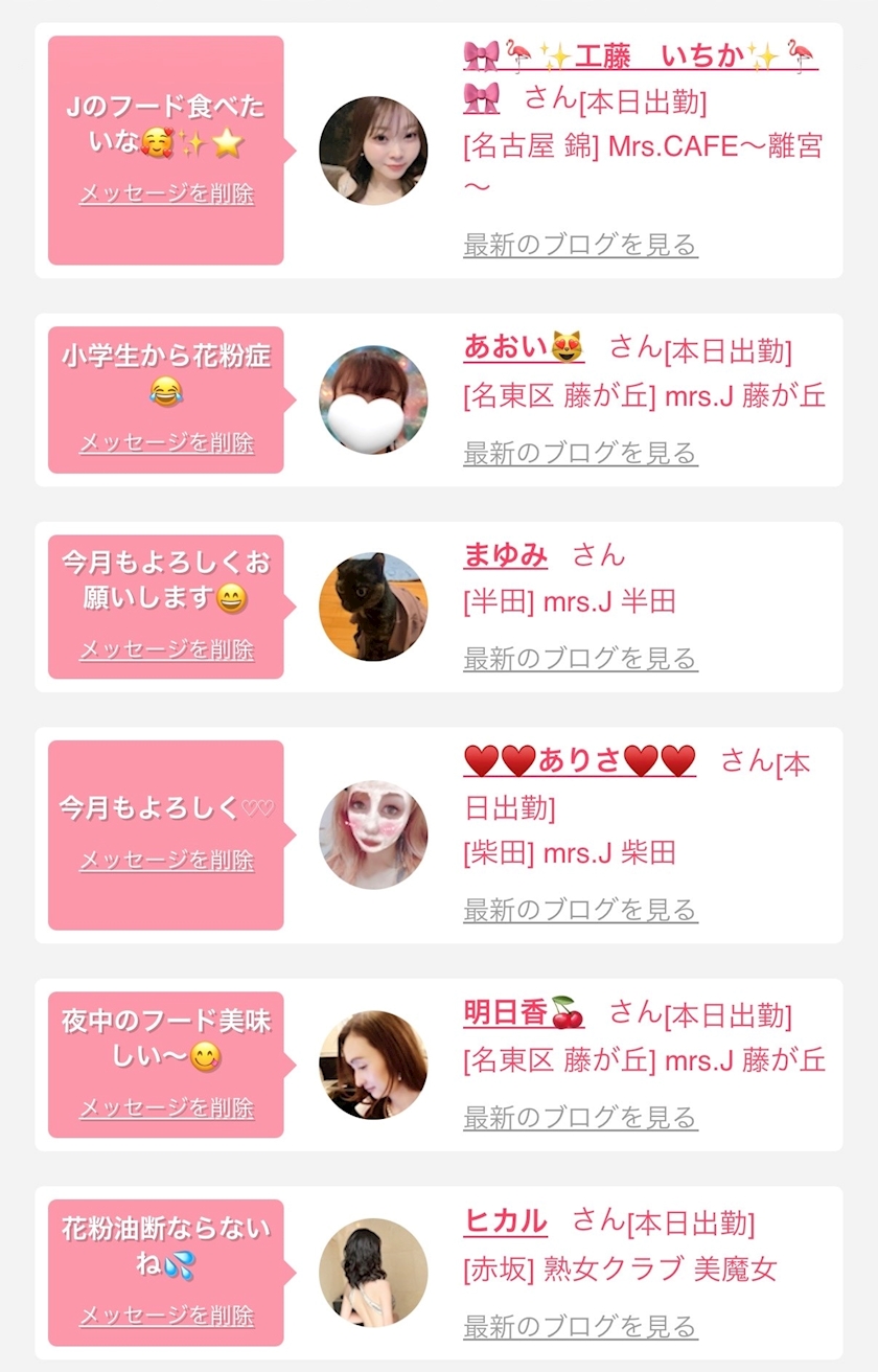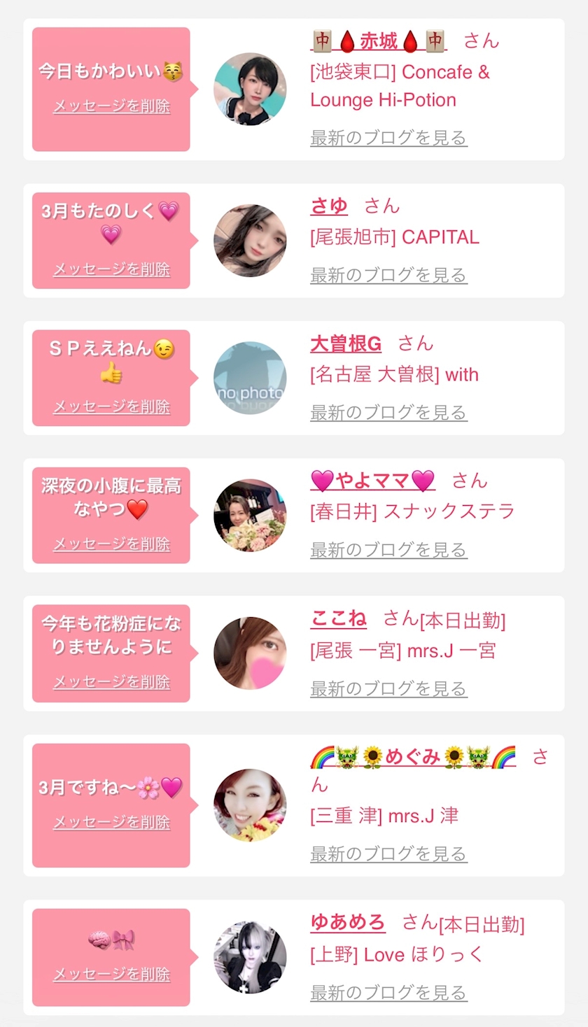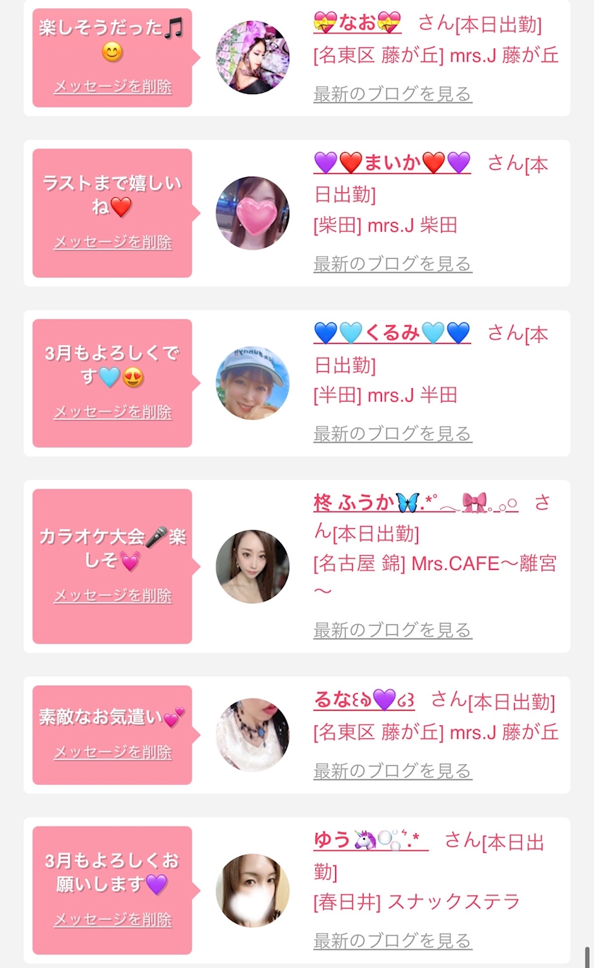 お店の出勤キャストを