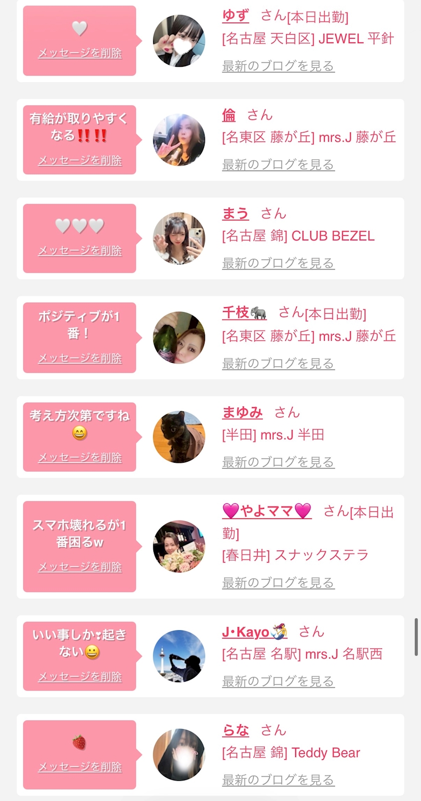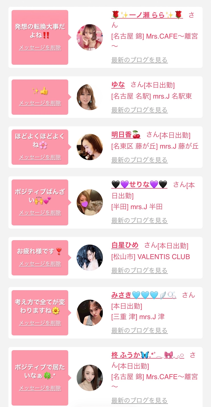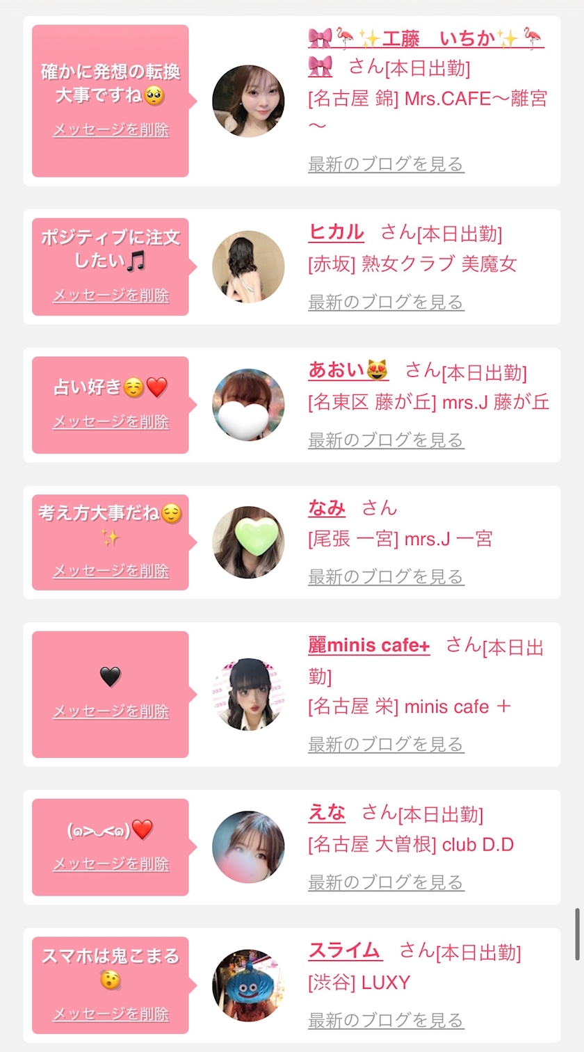 お店の出勤キャストを