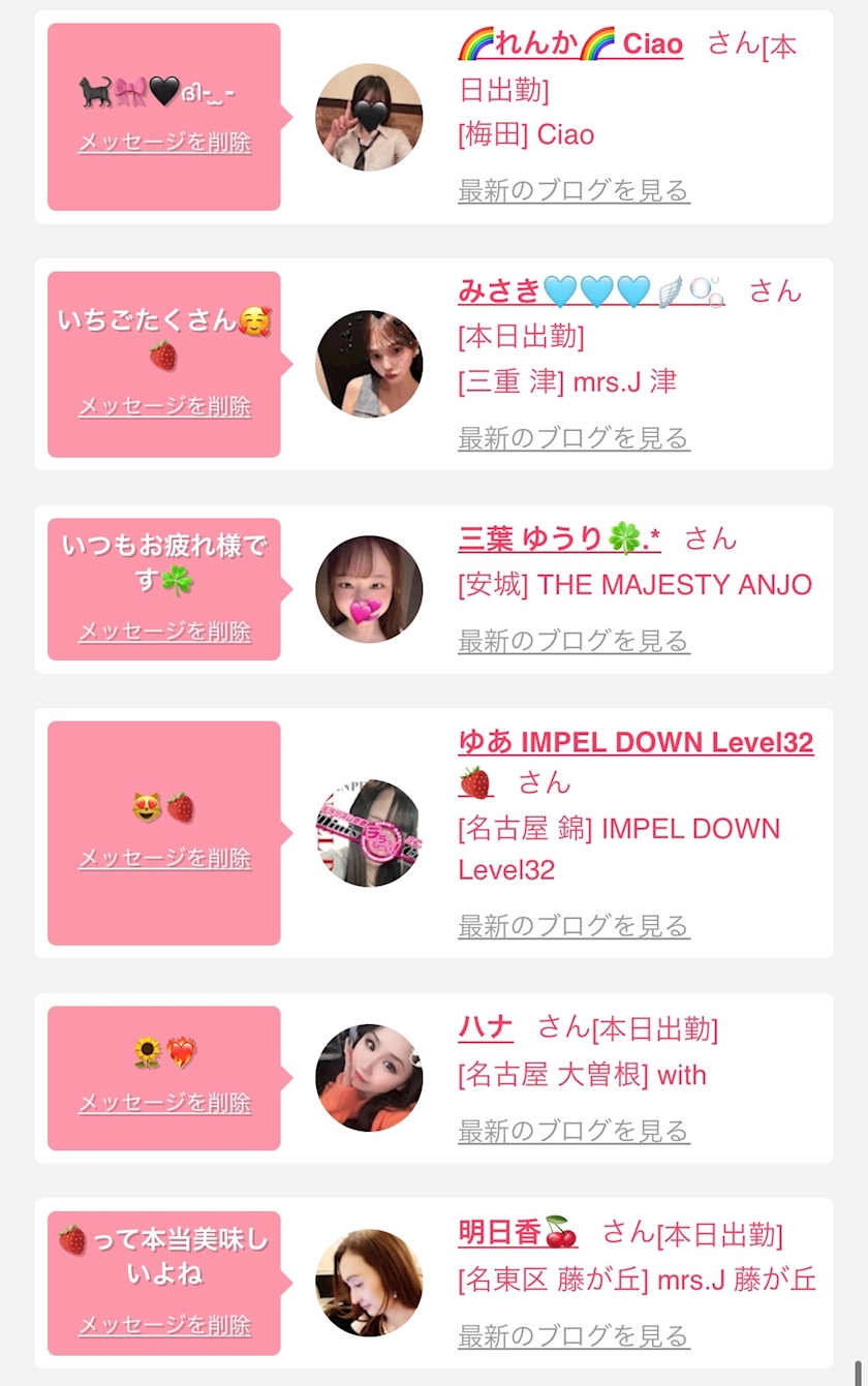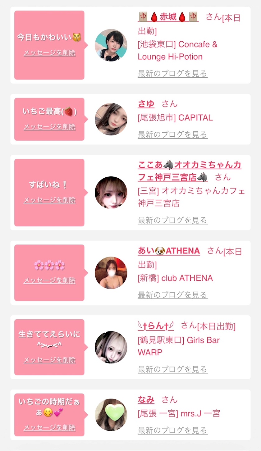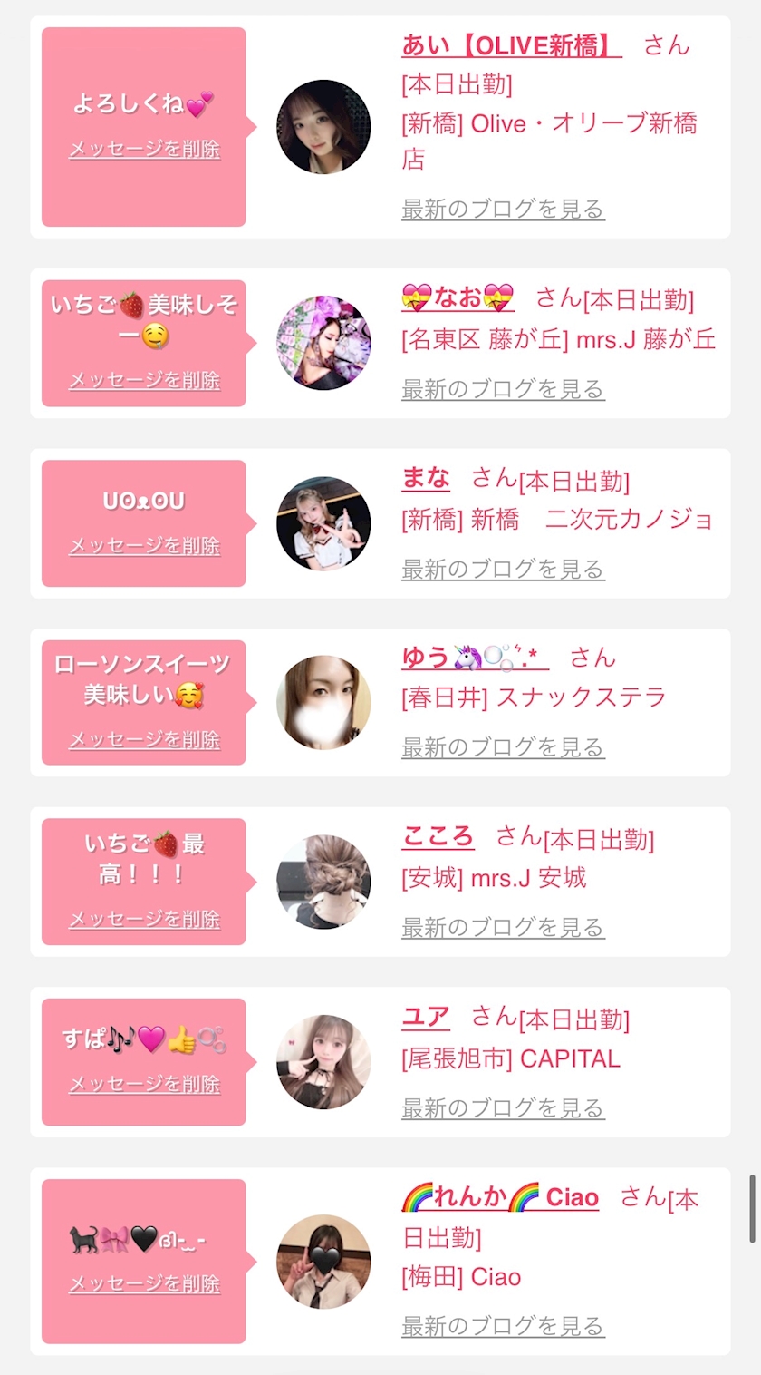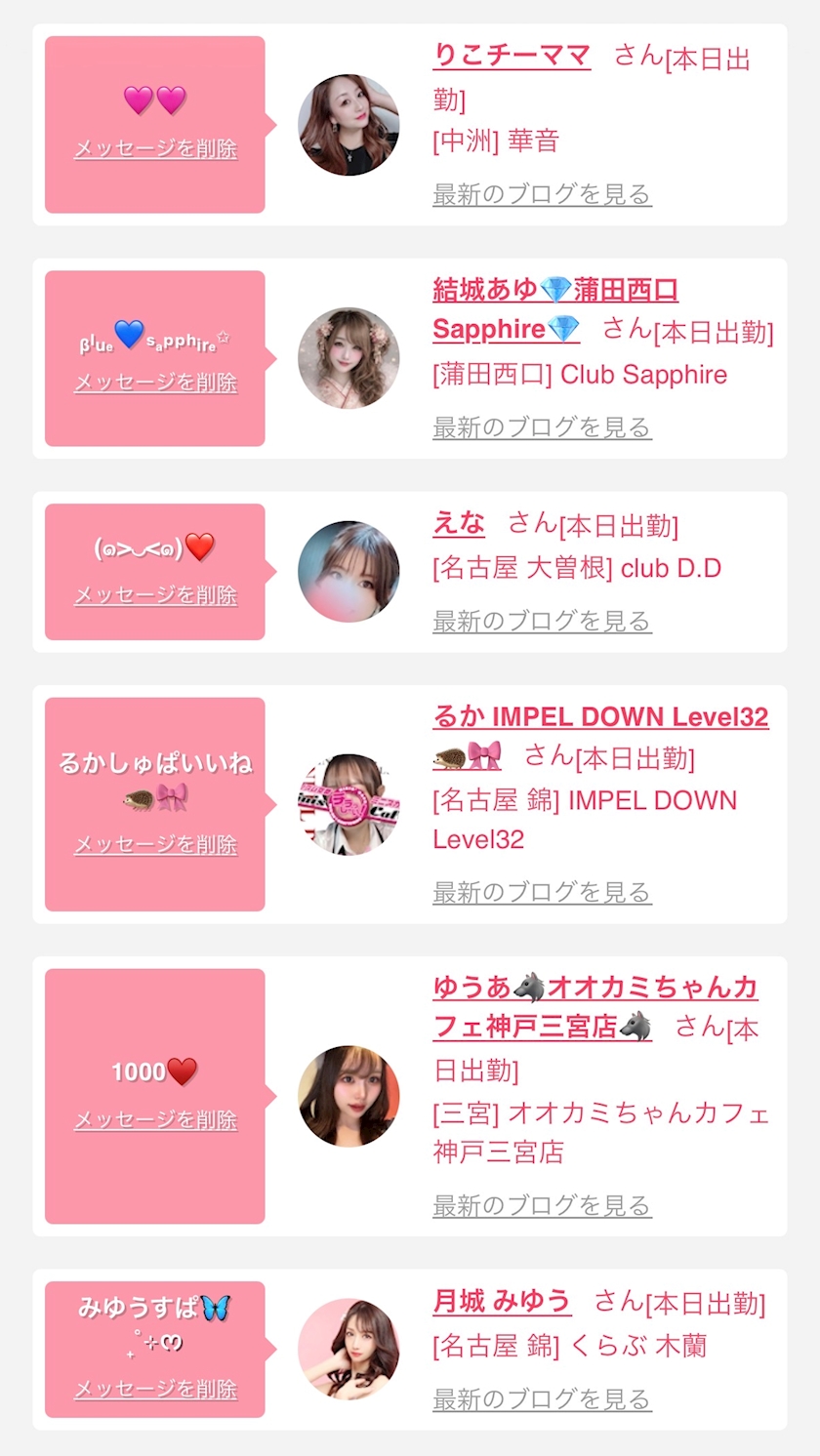お店の出勤キャストを