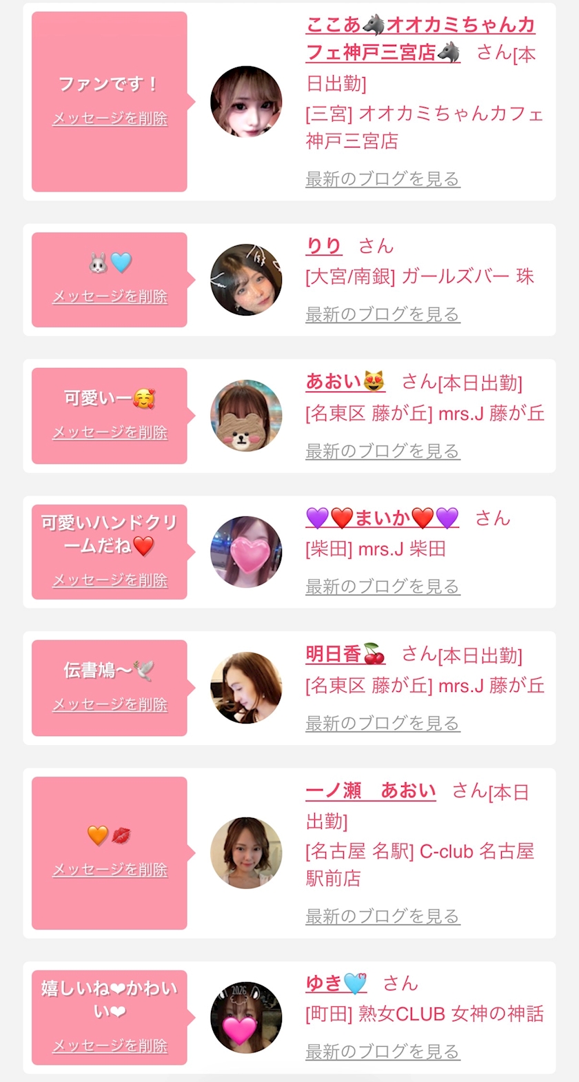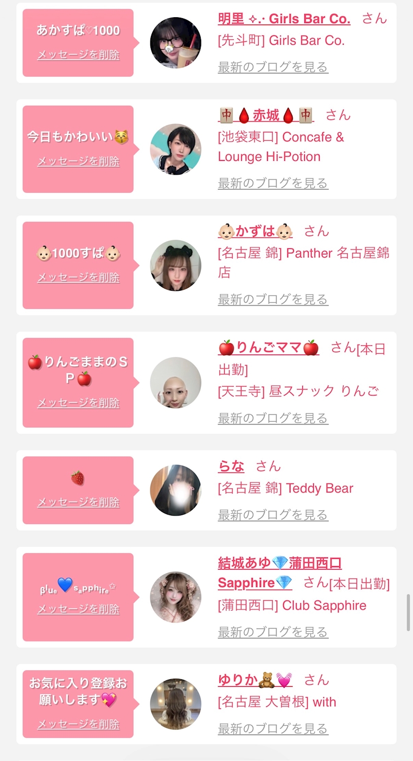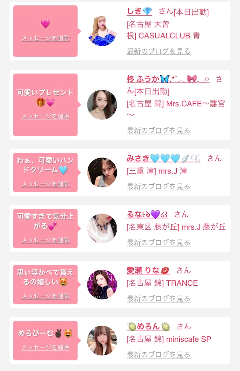 お店の出勤キャストを
