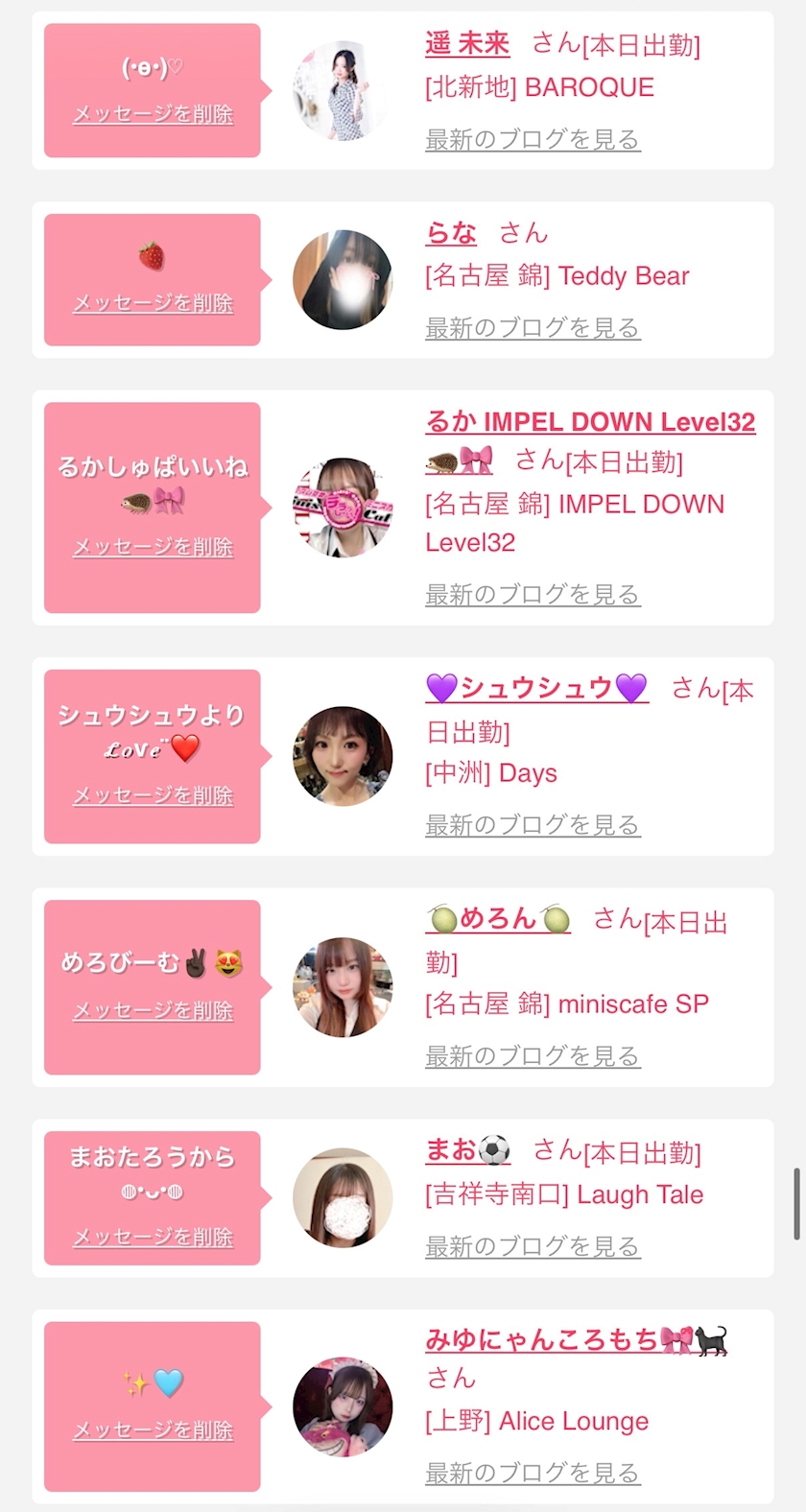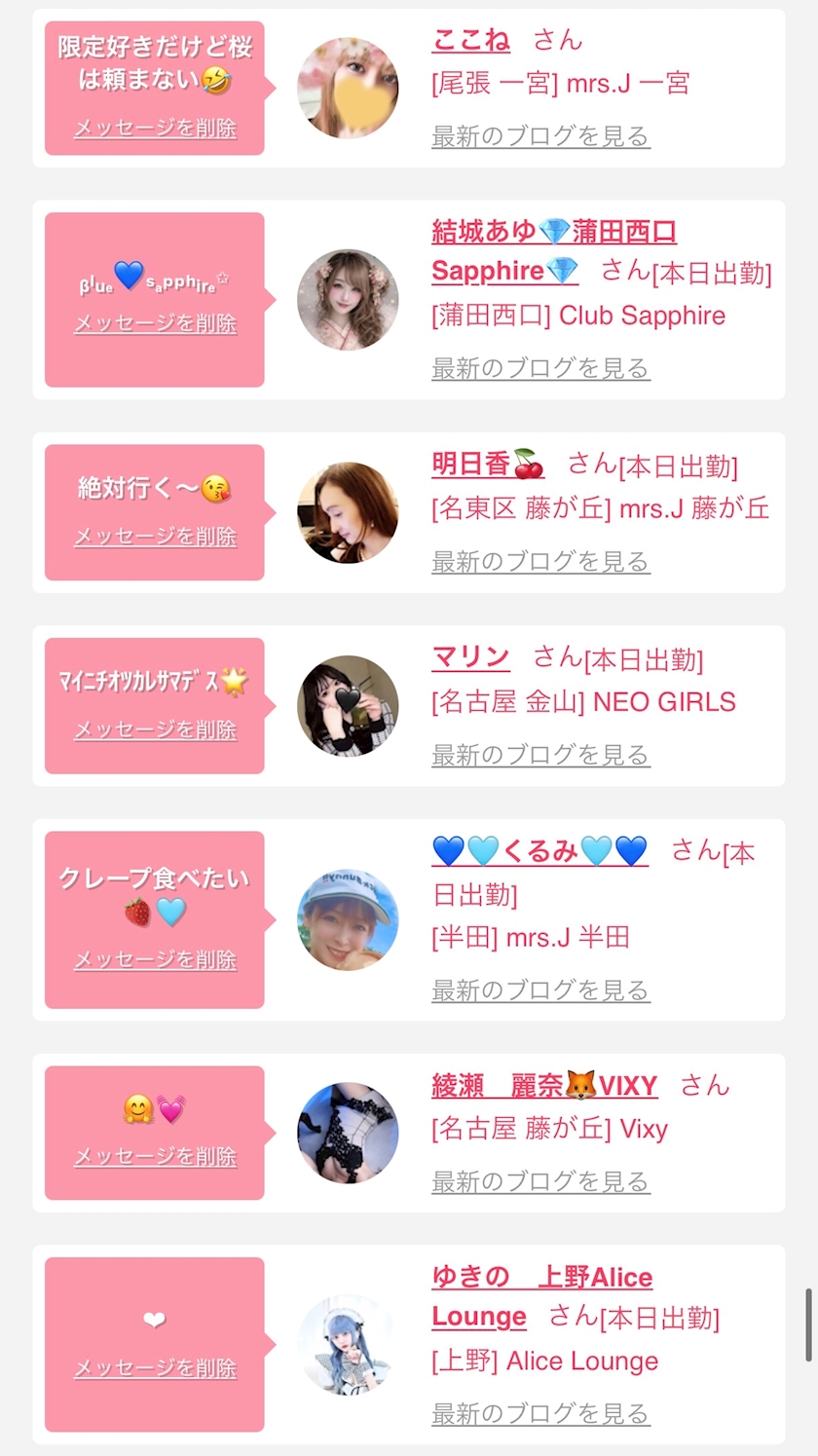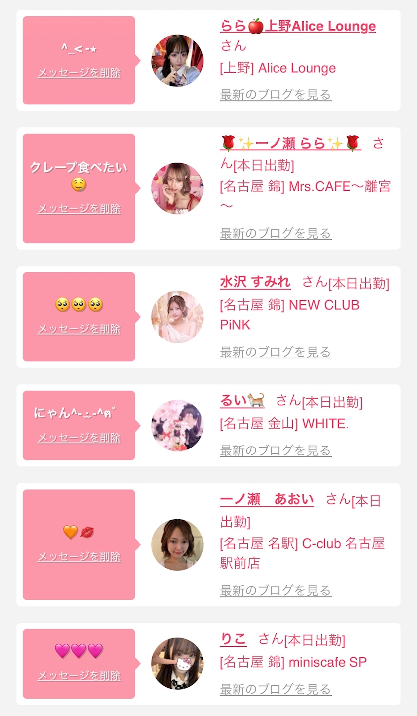 お店の出勤キャストを