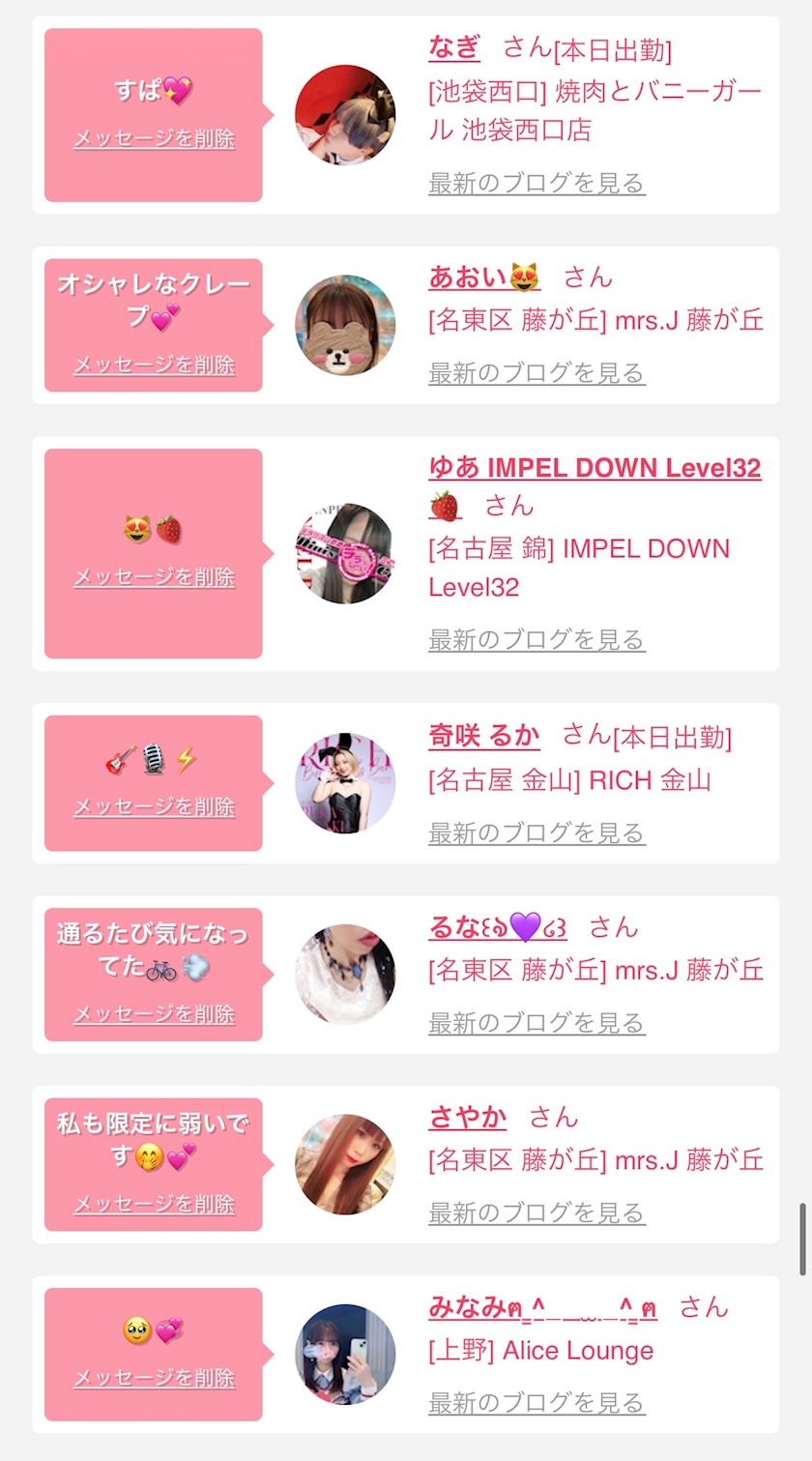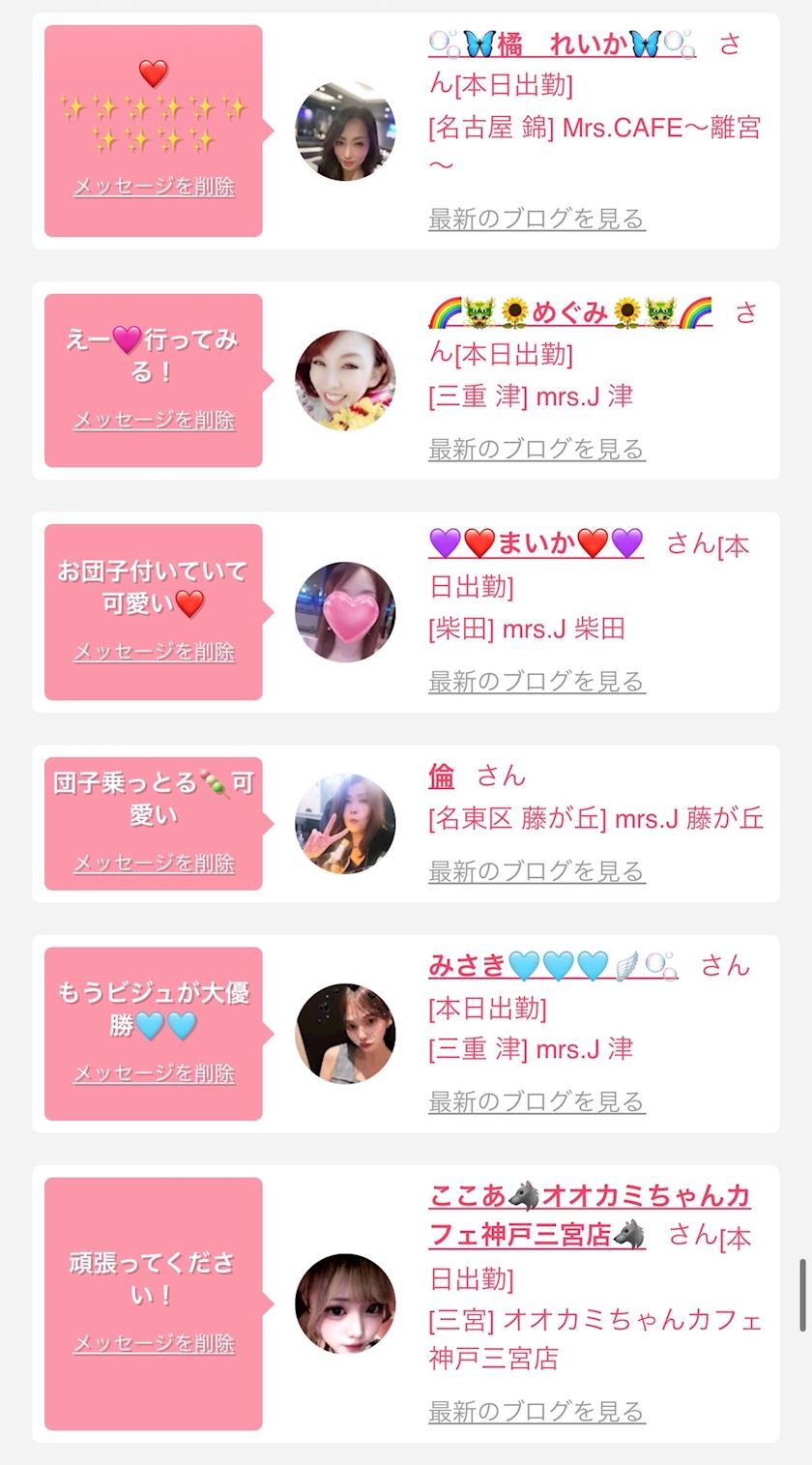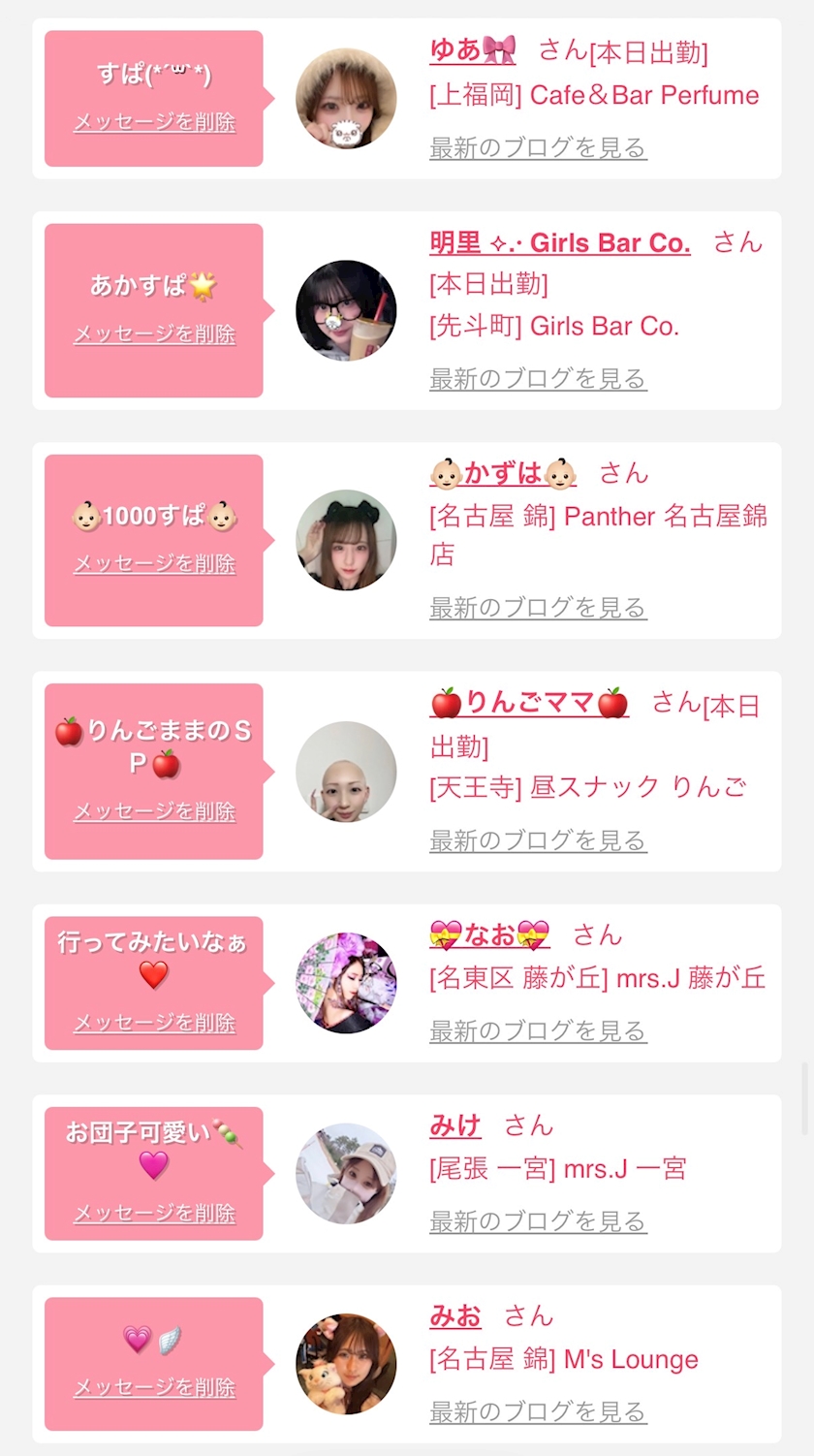 お店の出勤キャストを