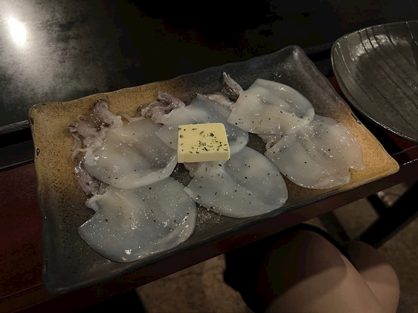 お好み焼きとイカ食べた!