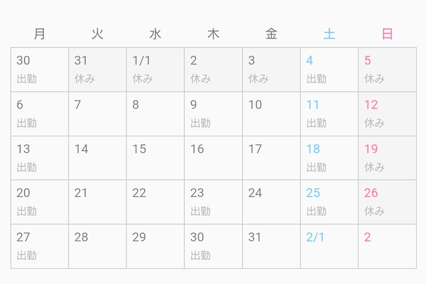 【1月出勤予定】