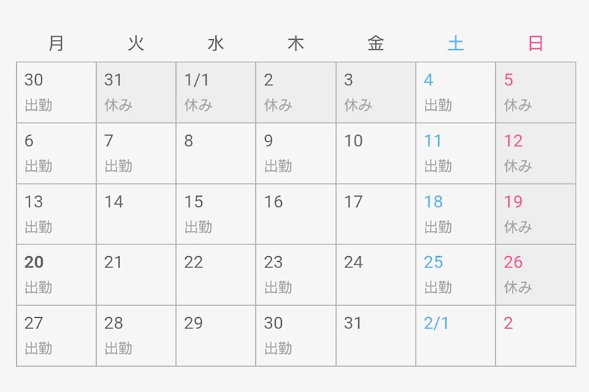 【1月出勤予定】