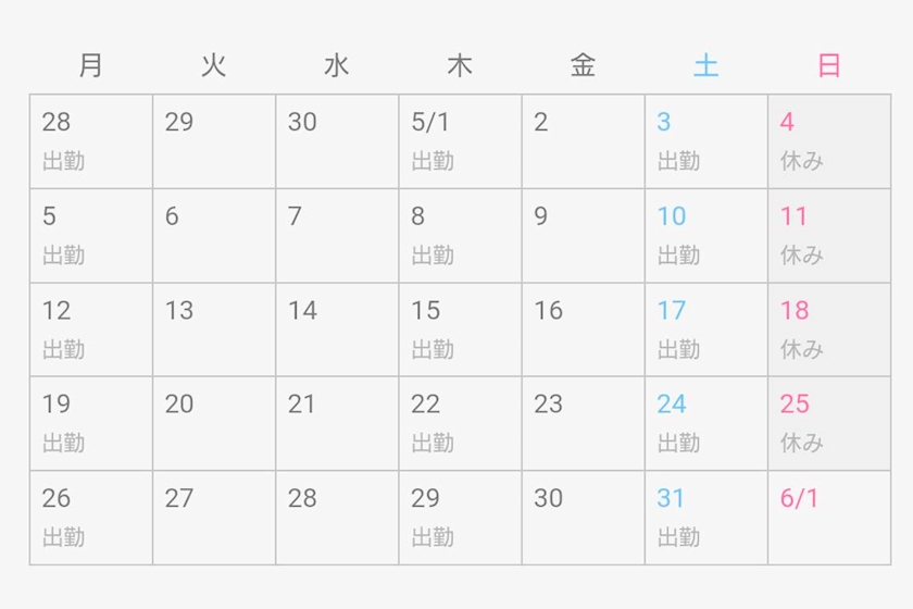【5月出勤予定】