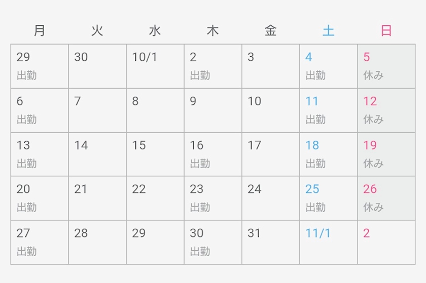 【10月出勤予定】