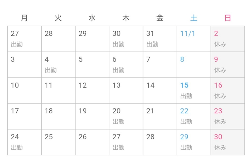 【11月出勤予定】