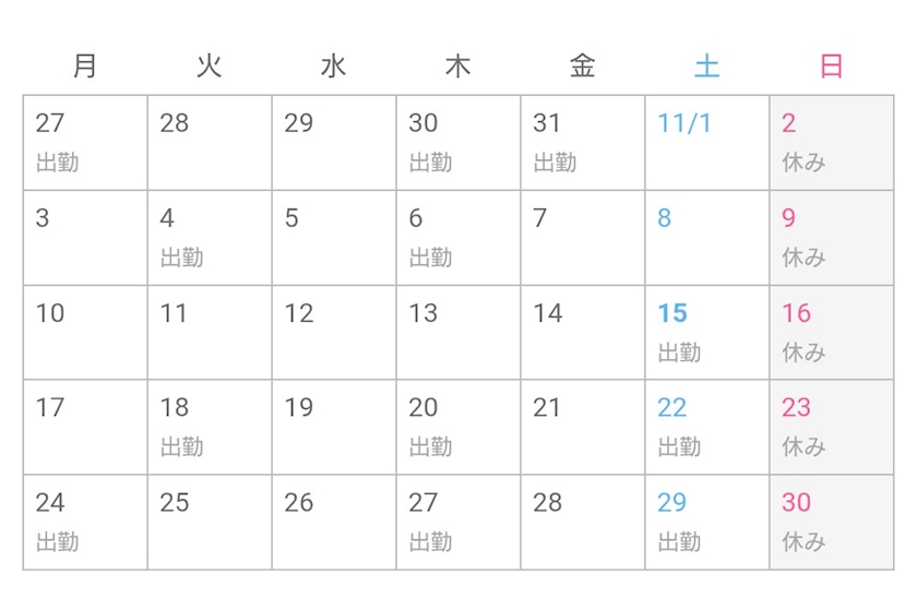 【11月出勤予定】