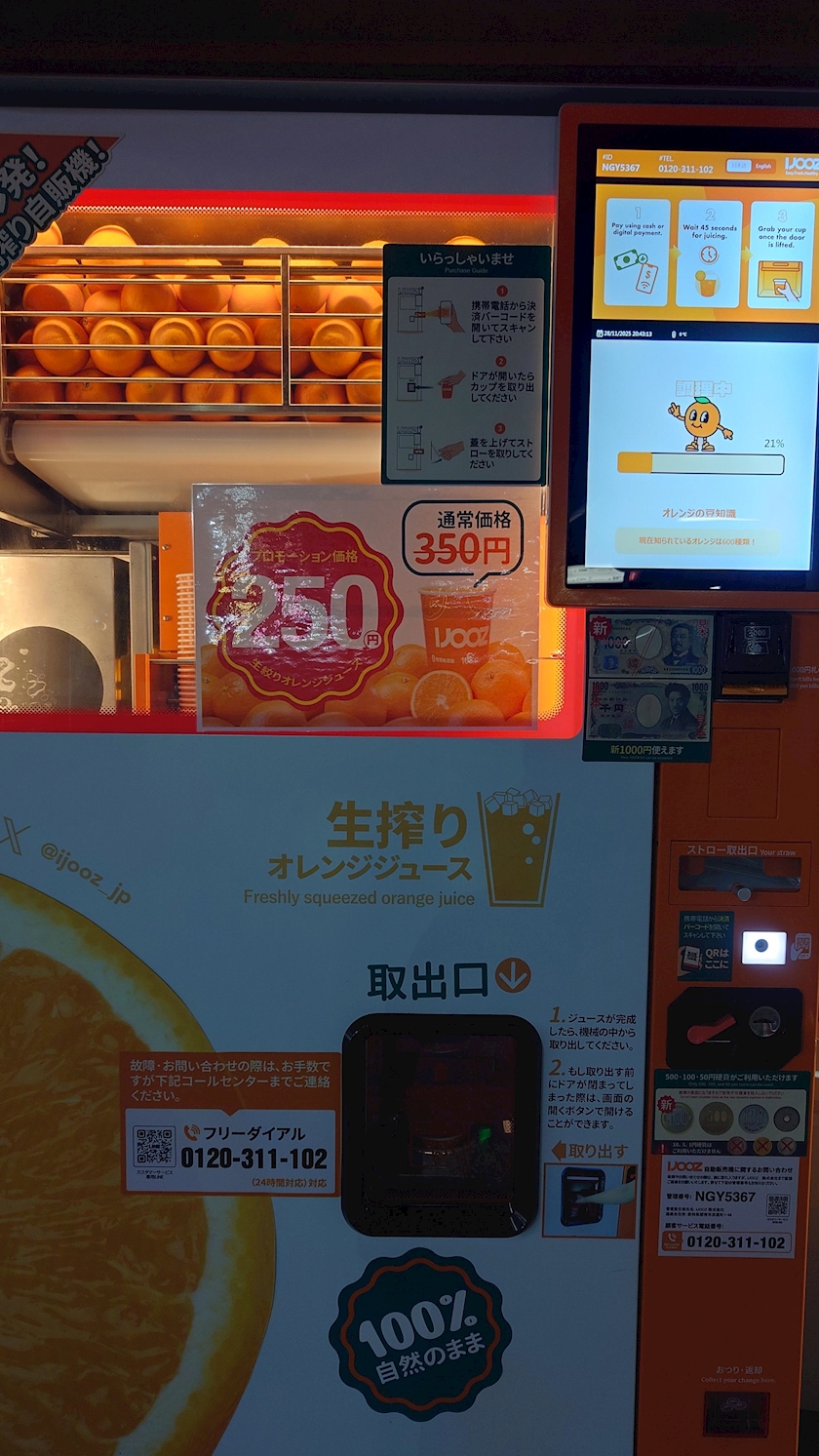 生搾りオレンジジュースの自販機🍊
