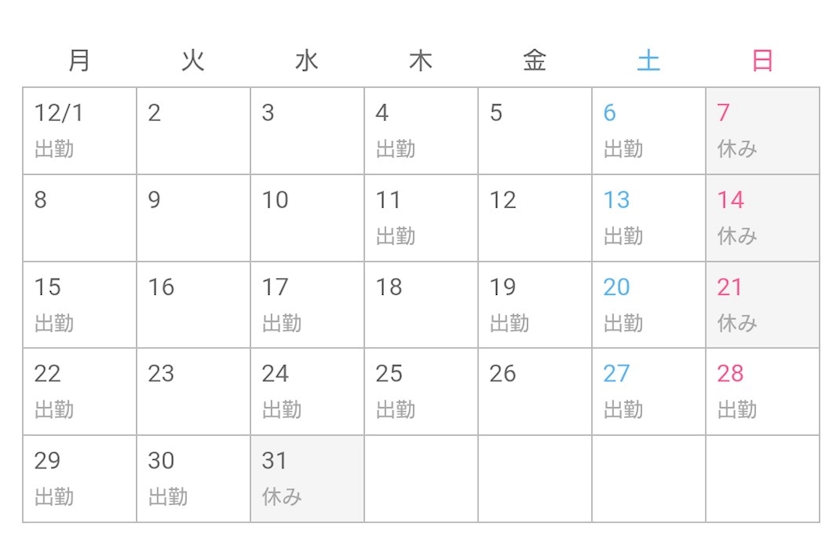 【12月出勤予定】