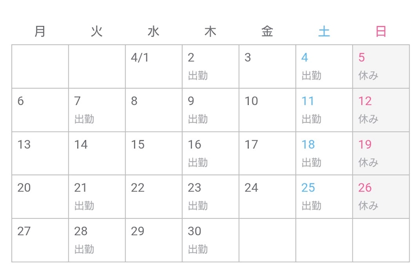 【4月出勤予定】