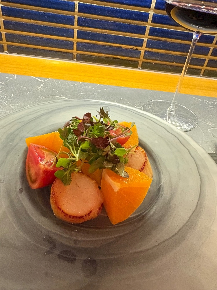 おっきなホタテとフルーツとワイン💕🦪