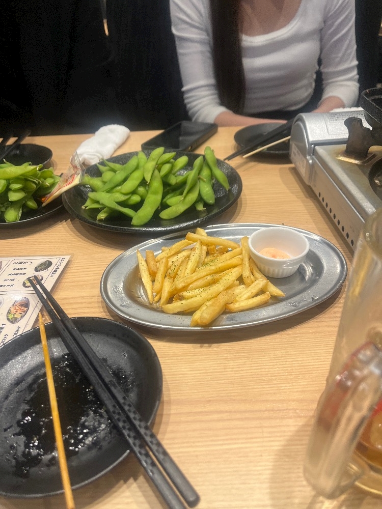 お酒にはやっぱりポテトと枝豆だよね〜〜〜🍟🫛