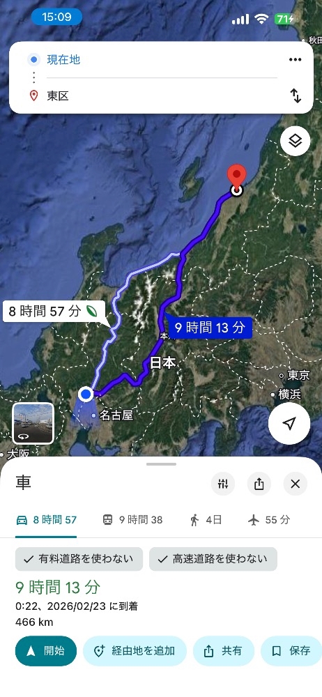 新潟くらいまでの距離は