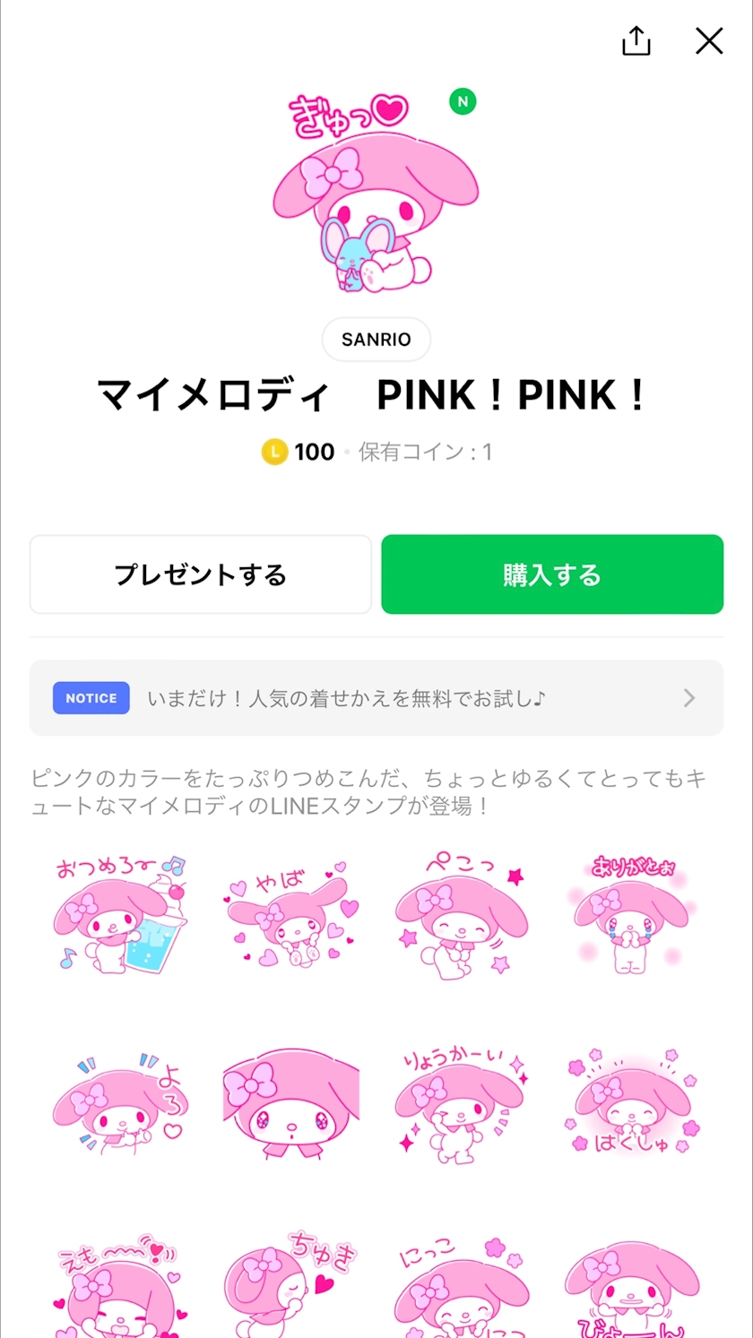 マイメロディの新しいスタンプも可愛すぎて…