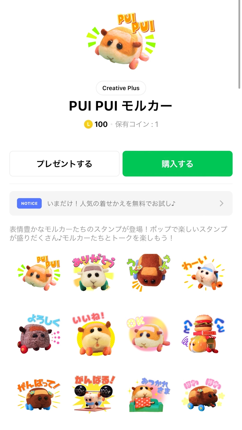 LINEにモルカーのスタンプあってびっっくり