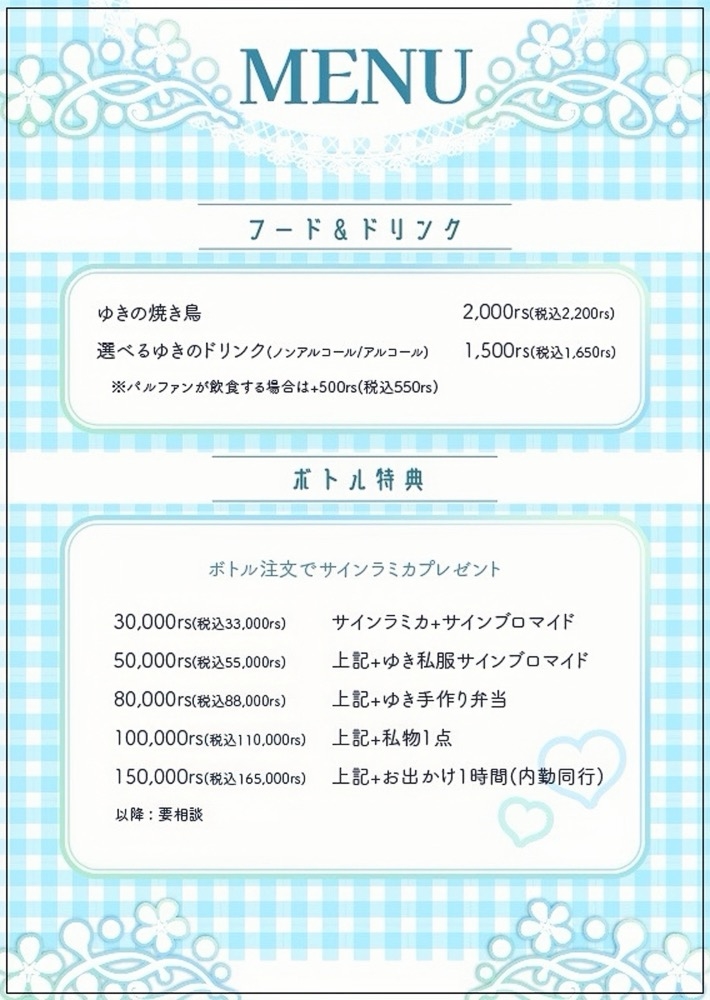 以下この日限定のフード・ドリンク、ボトル特典の詳細です❣️もし不明点あればDMください❣️