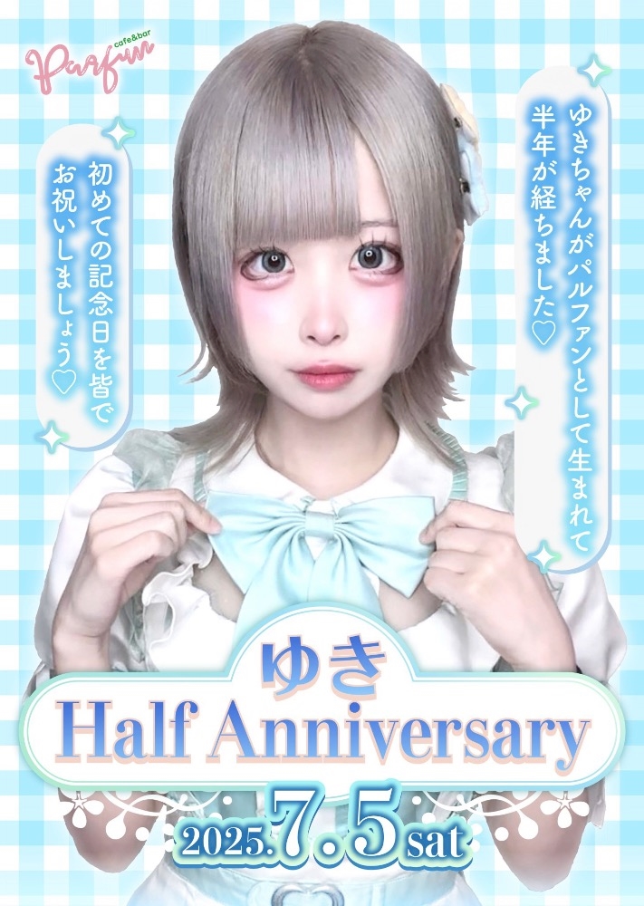 7月5日にゆきハーフアニバーサリーをさせて頂くことになりました°・*:.。.☆