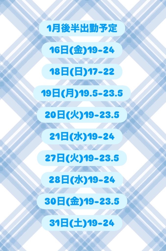 1月後半出勤予定🫧
