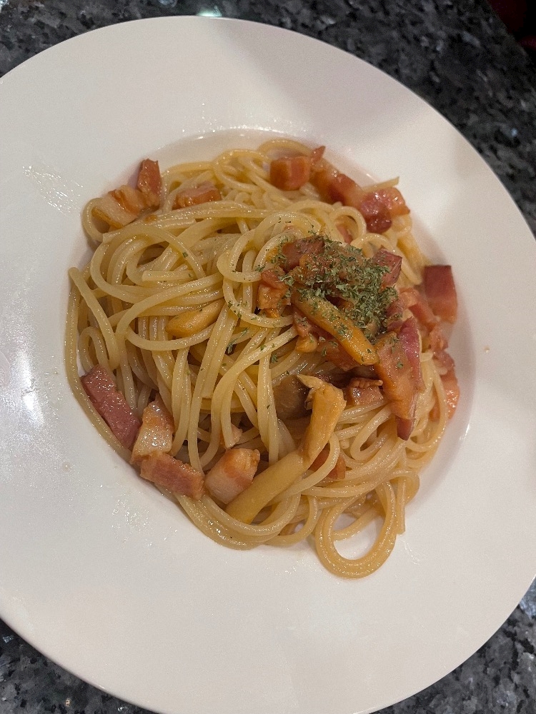 夜中にパスタもわけっこで