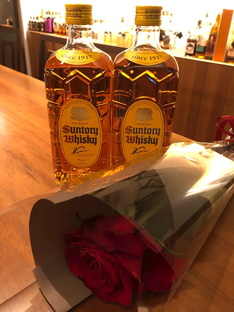 角ウイスキーと薔薇をプレゼント