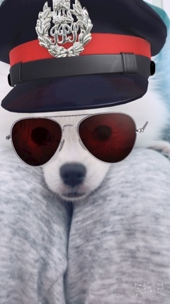 隣に座ってるワンコ見て