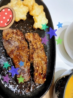 ステーキ食べてて
