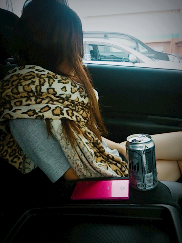 うちの娘車にビール持