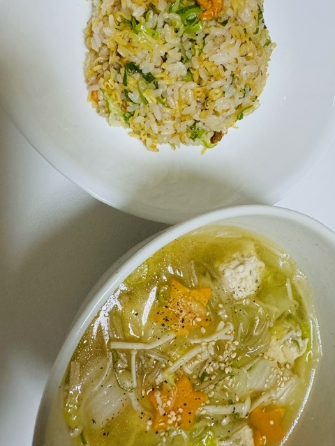 チャーハンと中華スープ作っただけ