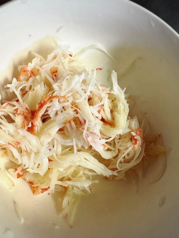 蟹の身ほぐして