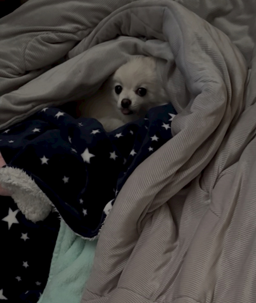 途中でココの毛布を