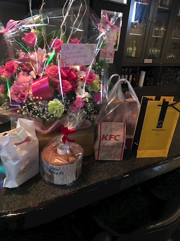 プレゼントとか 大量な荷物持って!