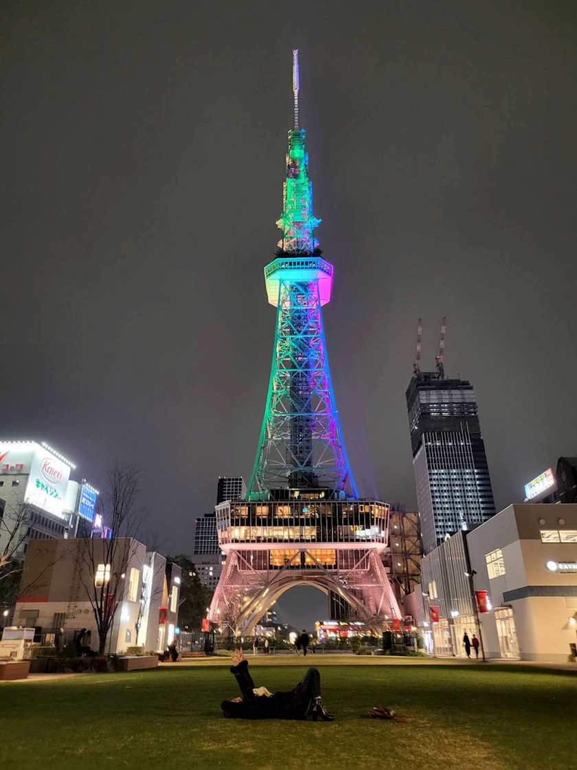 未来タワーで寝転ぶ女