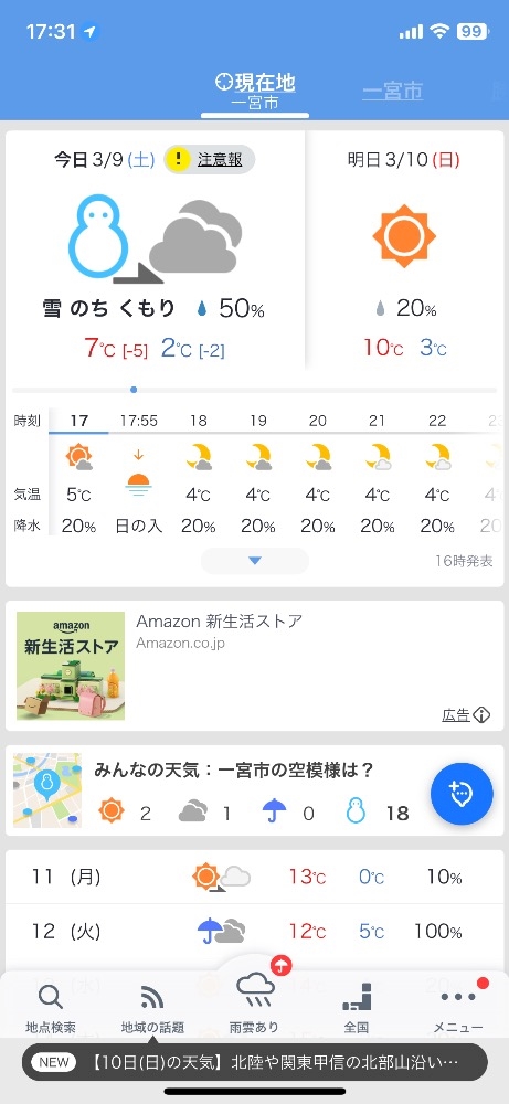 天気予報みたら