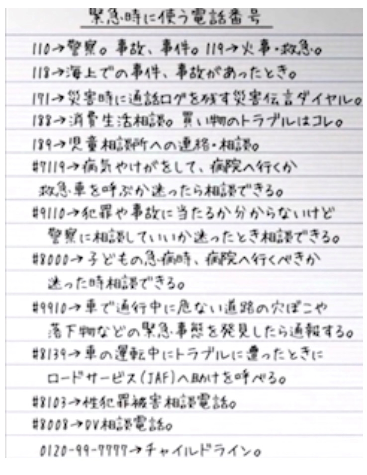 1/3 土曜日 【保存版】緊急時に使う電話番号