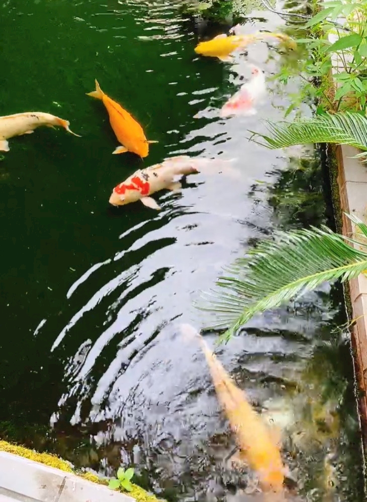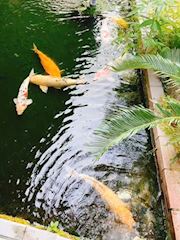 入り口の所に池があって鯉が泳いでた